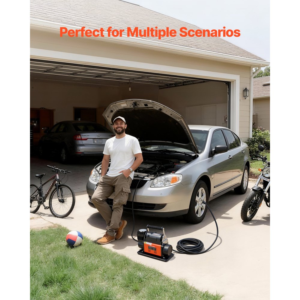 Γρήγορο και Αποδοτικό Φούσκωμα: Αυτός ο αεροσυμπιεστής βαρέως τύπου 12V παρέχει αποτελεσματική ροή αέρα 202 L/Min και μέγιστη πίεση λειτουργίας 150 PSI, εξασφαλίζοντας γρήγορο φούσκωμα ελαστικών μέσα σε λίγα λεπτά. Σας επιτρέπει να επιστρέψετε στον δρόμο σε χρόνο μηδέν. Προκαθορισμένη πίεση και αυτόματη διακοπή: Διατηρήστε τον έλεγχο με την ψηφιακή οθόνη LCD που παρακολουθεί την πίεση των ελαστικών σε πραγματικό χρόνο. Ρυθμίστε την επιθυμητή πίεση και θα σταματήσει αυτόματα όταν επιτευχθεί —— εξαλείφοντας την υπερπλήρωση, την υποπλήρωση και τη συνεχή παρακολούθηση του μετρητή πίεσης. Ευρείες εφαρμογές: Εξοπλισμένο με 3 προσαρμογείς ακροφυσίων και 1 προσαρμογέα κλειδώματος αντίχειρα, αυτό το φορητό φουσκωτό ελαστικών με αυτόματη διακοπή λειτουργίας είναι ιδανικό για αυτοκίνητα, SUV, φορτηγά, RV, καθώς και μοτοσικλέτες, ποδήλατα, μπάλες και εξοπλισμό αναψυχής όπως φουσκωτά παιχνίδια και σκάφη. Αξιόπιστη προστασία ασφαλείας: Κατασκευασμένη με σύστημα προστασίας από υπερθέρμανση, αυτή η αντλία αέρα βαρέως τύπου 150 PSI για χρήση εκτός δρόμου αποτρέπει τη ζημιά του κινητήρα από υψηλές θερμοκρασίες, εξασφαλίζοντας ασφαλή λειτουργία και μακροχρόνια απόδοση. Πλήρες πακέτο: Περιλαμβάνει αεροσυμπιεστή βαρέως τύπου με καλώδιο τροφοδοσίας 2 μέτρων + λαστιχένιο σωλήνα αέρα 7,8 μέτρων + 3 προσαρμογείς ακροφυσίου + προσαρμογέα κλειδώματος αντίχειρα + φορητή τσάντα εργαλείων. Πάντα έτοιμοι για περιπέτεια εκτός δρόμου.