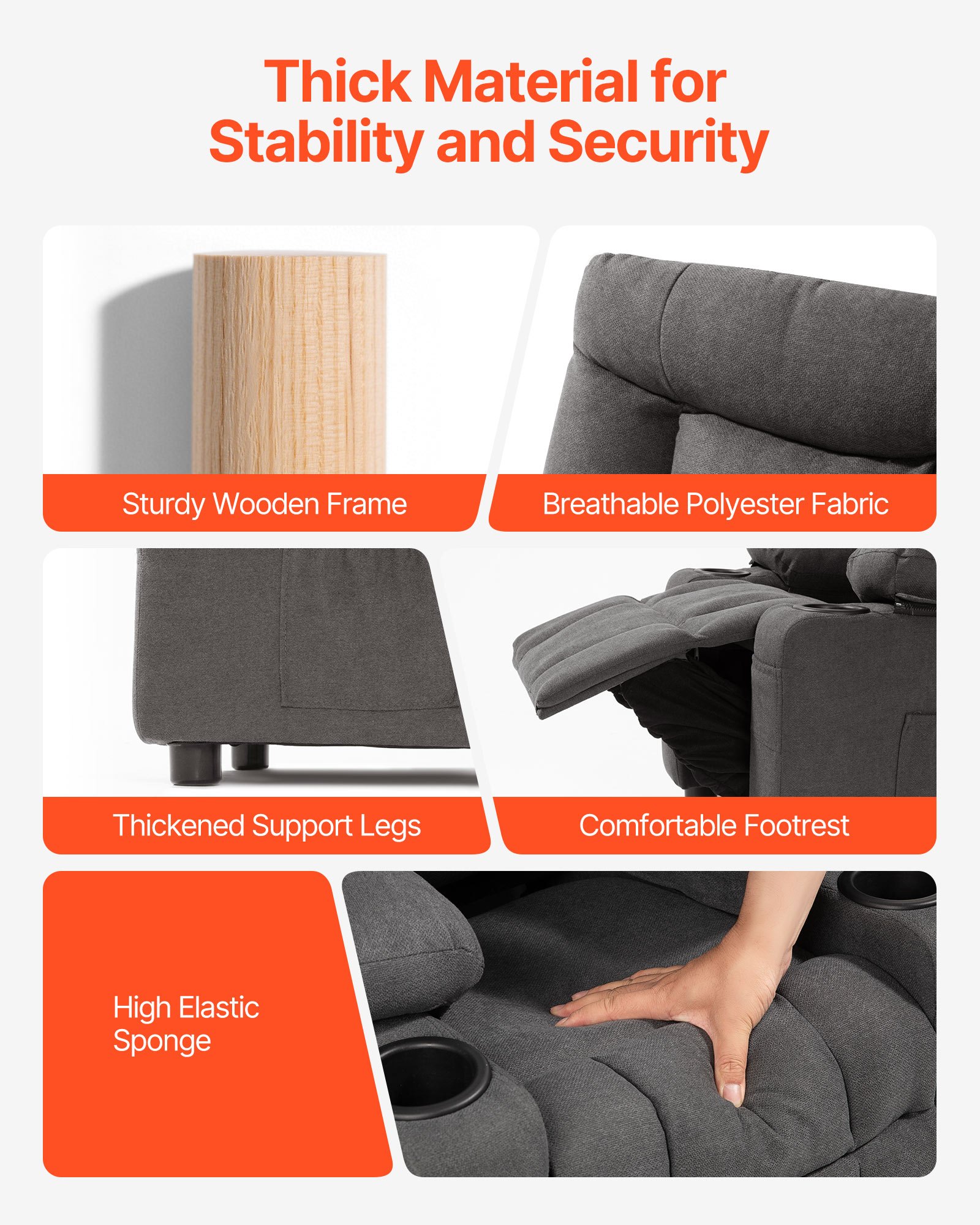 Υλικά υψηλής ποιότητας: Η παιδική καρέκλα με ανάκλιση διαθέτει στιβαρό ξύλινο σκελετό, εξασφαλίζοντας εξαιρετική σταθερότητα, είτε κάθεται είτε ξαπλώνει, αποφεύγοντας την ανατροπή. Το αναπνεύσιμο ύφασμα από πολυεστέρα κρατά τα παιδιά άνετα για μεγάλα χρονικά διαστήματα χωρίς να ζεσταίνονται. Η γέμιση από αφρό υψηλής ελαστικότητας παρέχει εξαιρετική στήριξη και δεν καταρρέει με παρατεταμένη χρήση.
