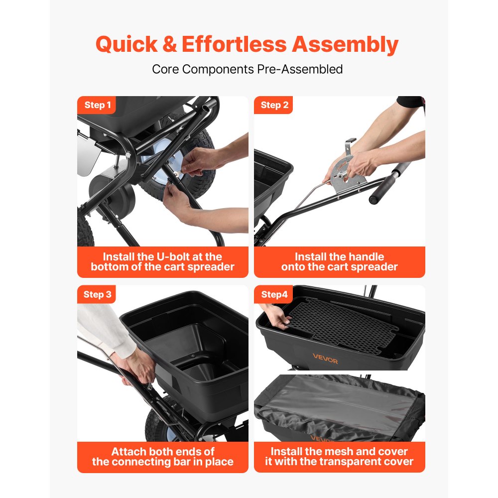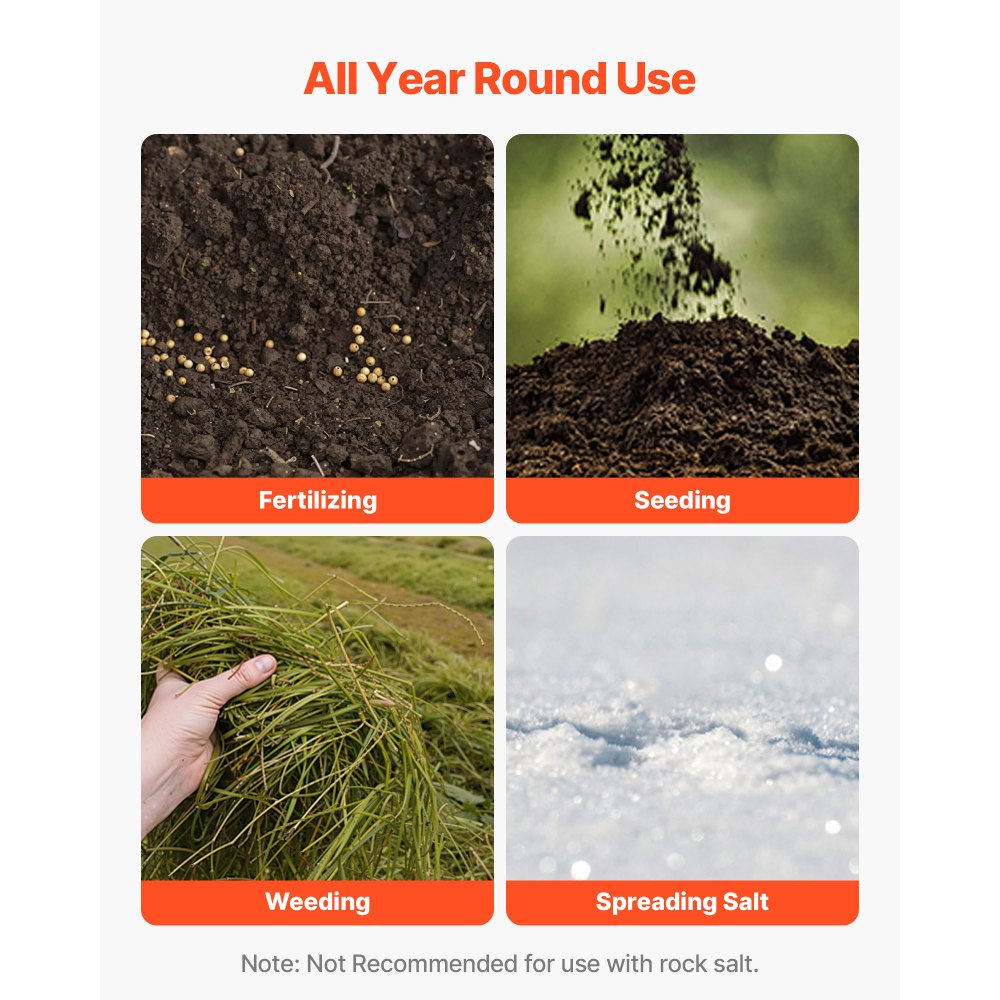 Ακριβής Διασπορά, Όμορφο Γκαζόν: Αυτός ο διασκορπιστής γκαζόν διαθέτει πλάτος διασποράς 12 ποδιών και ρυθμίσεις διασποράς 30 επιπέδων για ακριβή κάλυψη σπόρων γρασιδιού, λιπάσματος και λιωμένου πάγου. Η ρύθμιση πολλαπλών κατευθύνσεων διασφαλίζει ότι δεν θα χαθούν σημεία, ενώ η χοάνη 130 λίβρες μειώνει τη συχνότητα επαναπλήρωσης, εξοικονομώντας χρόνο και προσπάθεια. Ανθεκτική κατασκευή, έτοιμη για εξωτερικούς χώρους: Αυτός ο ανθεκτικός διασκορπιστής είναι κατασκευασμένος με πλαίσιο από χάλυβα με ηλεκτροστατική βαφή πούδρας και χοάνη ανθεκτική στην υπεριώδη ακτινοβολία και στις κρούσεις. Τα πνευματικά ελαστικά 13" διαχειρίζονται εύκολα το γρασίδι, το χαλίκι και το χιόνι, καθιστώντας τον κατάλληλο για όλες τις εξωτερικές συνθήκες. Εύκολη συναρμολόγηση: Ο διανομέας κήπου μας με βασικά εξαρτήματα διατίθεται προσυναρμολογημένος—δεν απαιτούνται τρύπημα ή ειδικά εργαλεία. Ακόμα και οι μεγαλύτεροι σε ηλικία ή οι αρχάριοι μπορούν να τον συναρμολογήσουν με ελάχιστη προσπάθεια. Χρήση όλο το χρόνο: Ο σπαρτικός μας γκαζόν είναι κατάλληλος για όλες τις εποχές: σπείρετε την άνοιξη, λιπάνετε το καλοκαίρι, εφαρμόζετε έλεγχο ζιζανίων το φθινόπωρο και απλώνετε λιωμένο πάγο τον χειμώνα. Ιδανικό για γκαζόν, κήπους και μικρά αγροκτήματα. Αποθήκευση που εξοικονομεί χώρο: Ο λιπασματοδιανομέας έχει σχεδιαστεί για συμπαγές μέγεθος. Η λαβή και η χοάνη αποσπώνται για εύκολη και αποτελεσματική αποθήκευση.
