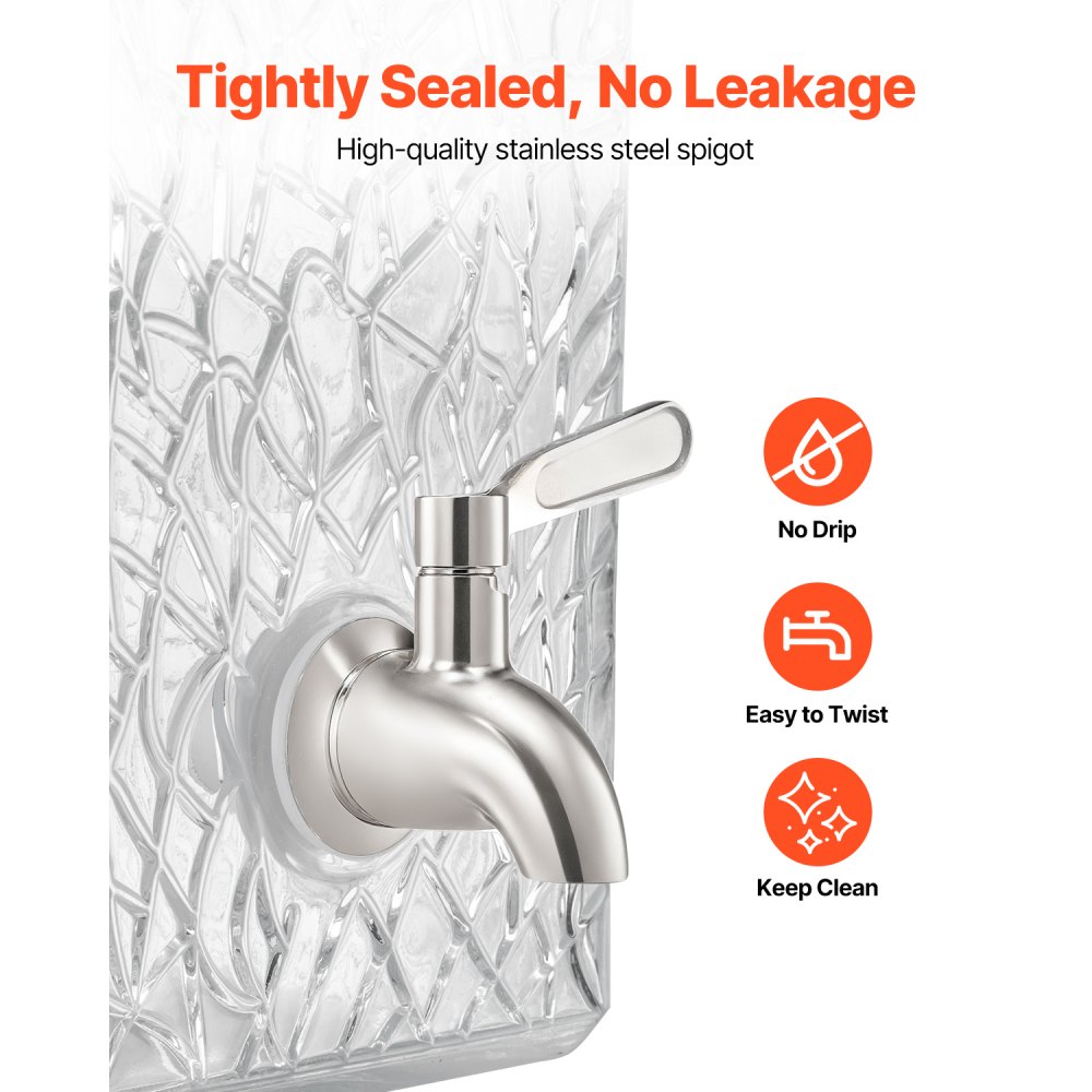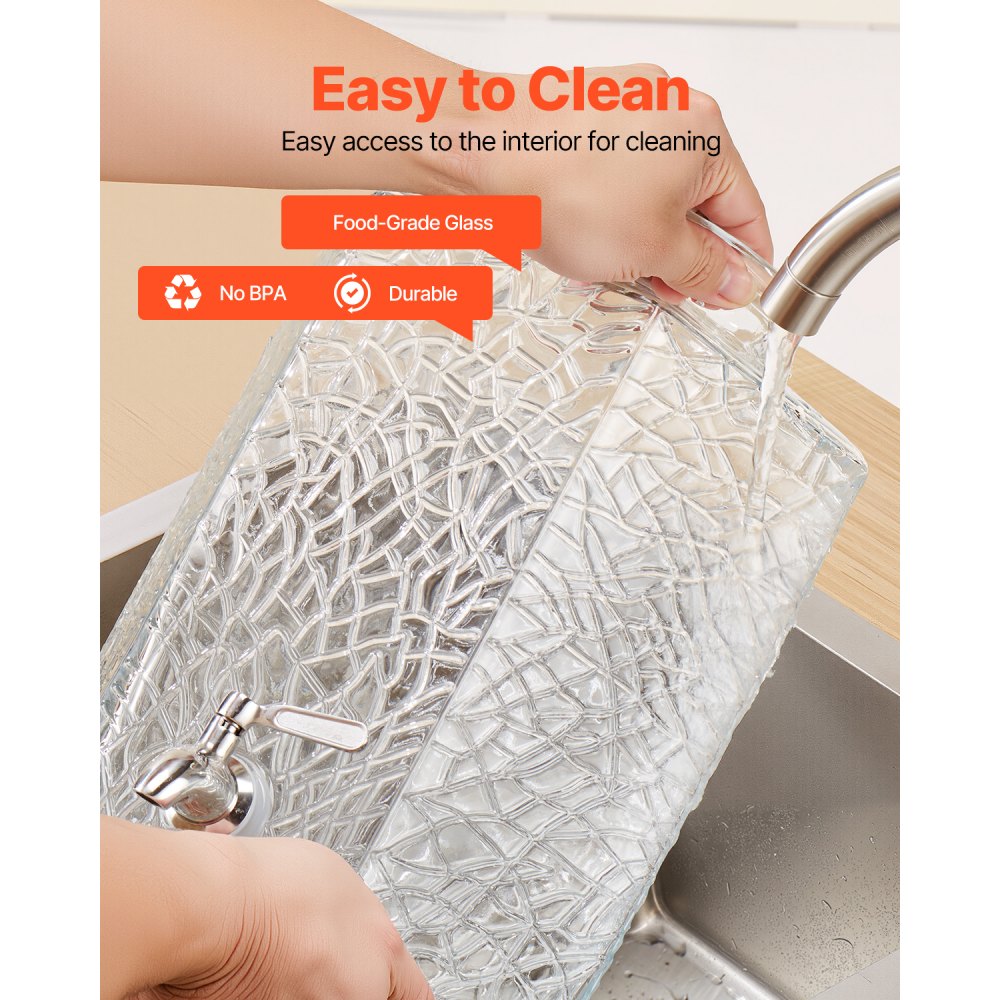 Συνεχής Παροχή 10L: Ο διανομέας ποτών μας έχει μεγάλη χωρητικότητα 10L, σχεδιασμένος για να σας εξοικονομεί χρόνο και να μειώνει την ανάγκη για συχνές αναπληρώσεις. Εξασφαλίζει συνεχή παροχή ποτών για πολυσύχναστα εστιατόρια, ξενοδοχεία και πάρτι. Στόμιο χωρίς στάλαξη: Εξοπλισμένο με ένα ερμητικά σφραγισμένο στόμιο από ανοξείδωτο ατσάλι, το δοχείο ποτών είναι βολικό για διανομή χωρίς διαρροές, επομένως δεν χρειάζεται να ανησυχείτε για τον καθαρισμό των χυμένων ποτών. Βοηθά στη διατήρηση του σταθμού ποτών σας καθαρού και αισθητικά όμορφου. Τέλεια Οθόνη: Ο διαφανής σχεδιασμός αναδεικνύει όμορφα τον χυμό ή τα ποτά σας, ιδανικός για την προβολή τσαγιού φρούτων, παγωμένου τσαγιού, χυμού, νερού και άλλων. Ο διανομέας λεμονάδας διαθέτει επίσης έναν μικρό πίνακα, ιδανικό για την επισήμανση των ονομάτων των ποτών. Εύκολο στη χρήση: Ο σχεδιασμός με το φαρδύ στόμιο διευκολύνει την αναπλήρωση του διανομέα χυμού, η μεταλλική βάση παρέχει σταθερή στήριξη και εύκολη διανομή, το καπάκι εμποδίζει την είσοδο σκόνης ή βρωμιάς, διασφαλίζοντας ότι οι χυμοί σας παραμένουν καθαροί και γευστικοί. Εύκολος καθαρισμός: Κατασκευασμένος από γυαλί κατάλληλο για τρόφιμα, ο διανομέας χυμού για πάρτι είναι ανθεκτικός στους λεκέδες, ανθεκτικός και κατάλληλος για πλυντήριο πιάτων. Το αφαιρούμενο καπάκι και το φαρδύ άνοιγμα κάνουν τον καθαρισμό του εσωτερικού πανεύκολο.
