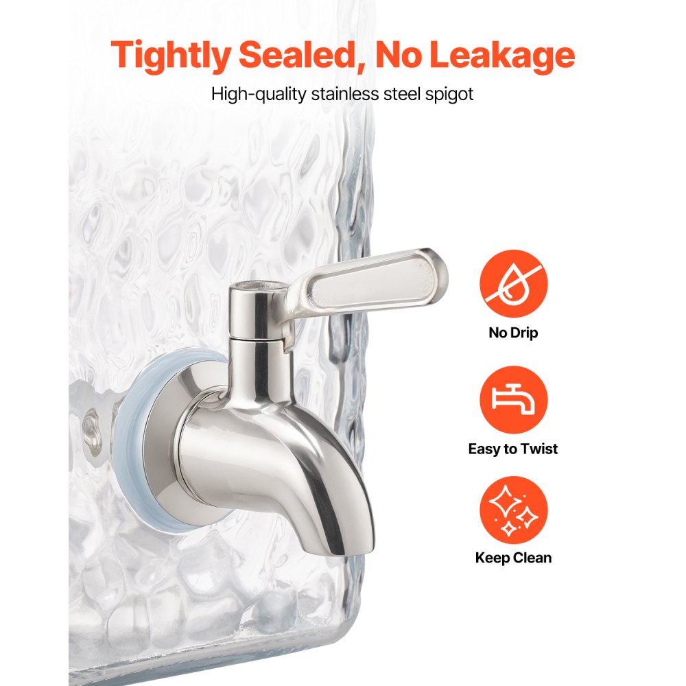 Συνεχής Παροχή: Ο διανομέας ποτών διπλού κυλίνδρου έχει μεγάλη χωρητικότητα 11 λίτρων (5,5 λίτρα ανά κύλινδρο) και αποθηκεύει δύο τύπους ποτών. Μειώνει τις συχνές αναπληρώσεις, εξασφαλίζοντας συνεχή παροχή για πολυσύχναστα εστιατόρια, ξενοδοχεία και πάρτι. Στόμιο χωρίς στάλαξη: Εξοπλισμένο με ένα ερμητικά σφραγισμένο στόμιο από ανοξείδωτο ατσάλι, το δοχείο ποτών είναι βολικό για διανομή χωρίς διαρροές, επομένως δεν χρειάζεται να ανησυχείτε για τον καθαρισμό των χυμένων ποτών. Βοηθά στη διατήρηση του σταθμού ποτών σας καθαρού και αισθητικά όμορφου. Τέλεια Οθόνη: Ο διαφανής σχεδιασμός αναδεικνύει όμορφα τον χυμό ή τα ποτά σας, ιδανικός για την προβολή τσαγιού φρούτων, παγωμένου τσαγιού, χυμού, νερού και άλλων. Ο διανομέας λεμονάδας διαθέτει επίσης δύο μικρούς πίνακες, ιδανικούς για την επισήμανση των ονομάτων των ποτών. Εύκολο στη χρήση: Ο σχεδιασμός με το φαρδύ στόμιο διευκολύνει την αναπλήρωση του διανομέα χυμού, η μεταλλική βάση παρέχει σταθερή στήριξη και εύκολη διανομή, το καπάκι εμποδίζει την είσοδο σκόνης ή βρωμιάς, διασφαλίζοντας ότι οι χυμοί σας παραμένουν καθαροί και γευστικοί. Εύκολος καθαρισμός: Κατασκευασμένος από γυαλί κατάλληλο για τρόφιμα, ο διανομέας χυμού για πάρτι είναι ανθεκτικός στους λεκέδες, ανθεκτικός και κατάλληλος για πλυντήριο πιάτων. Το αφαιρούμενο καπάκι και το φαρδύ άνοιγμα κάνουν τον καθαρισμό του εσωτερικού πανεύκολο.