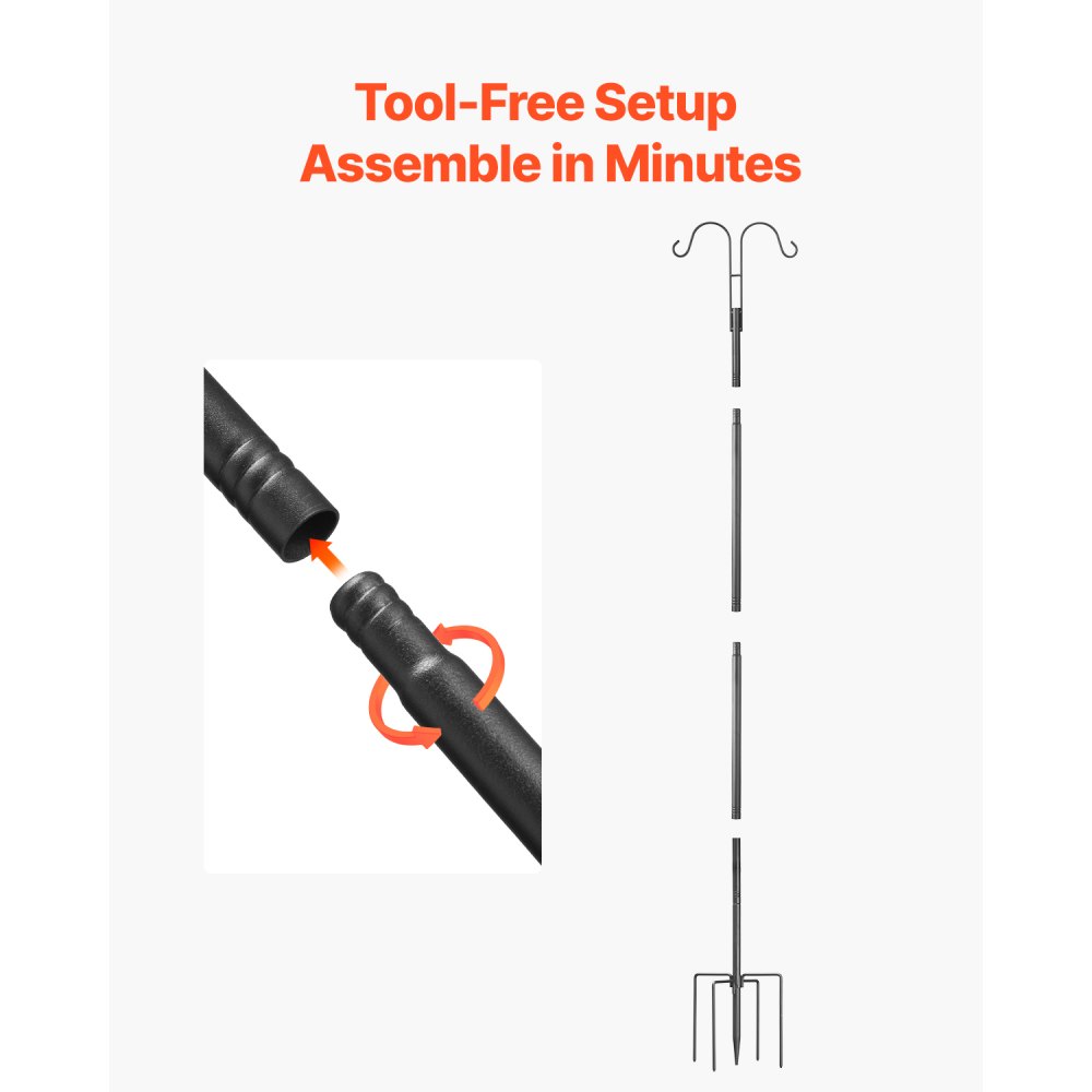 Σχεδιασμός με διπλό γάντζο: Αυτός ο στύλος ταΐστρας πουλιών διαθέτει κλασικό σχεδιασμό με διπλό βραχίονα και 8 κομμάτια, προσθέτοντας καλλιτεχνική ομορφιά στον εξωτερικό κήπο ή το μπαλκόνι σας. Κρεμάστε φυτά, καλάθια με λουλούδια, διακοσμητικά, για να βελτιώσετε τον εξωτερικό σας χώρο. Ισχυρά και στιβαρά: Κατασκευασμένα από χάλυβα ανθεκτικό στη σκουριά και τη διάβρωση με διάμετρο φ3/4 ίντσας / 19 χιλιοστών, τα άγκιστρα κήπου μπορούν να υποστηρίξουν έως και 33 λίβρες / 15 κιλά. Είτε κρεμάτε βαριά αντικείμενα είτε αντιμετωπίζετε αντίξοες καιρικές συνθήκες, παραμένουν αξιόπιστα για μακροχρόνια χρήση. Αντιανεμικό και ανθεκτικό σε ανατροπές: Εξοπλισμένο με σταθερή βάση με πέντε άκρα, μπορεί εύκολα να στερεωθεί στο έδαφος, παραμένοντας σταθερό ακόμα και σε ισχυρούς ανέμους, αποφεύγοντας την ανατροπή και εξασφαλίζοντας ηρεμία κατά τη χρήση. Ένα αξιόπιστο γάντζο για βοσκό για όλες τις εξωτερικές ανάγκες. Πολλαπλή χρήση: Δεν μπορεί μόνο να χρησιμοποιηθεί ως κρεμάστρα ταΐστρας για κολίβρια, αλλά υποστηρίζει επίσης εύκολα κρεμαστά φυτά, φανάρια, κουδούνια ανέμου και άλλα. Αυτός ο ευέλικτος γάντζος κήπου καλύπτει τις ποικίλες ανάγκες εξωτερικής διακόσμησης, ανανεώνοντας τον εξωτερικό σας χώρο. Γρήγορη συναρμολόγηση: Ο σχεδιασμός σύνδεσης με σπείρωμα δεν απαιτεί εργαλεία—απλώς βιδώστε το εύκολα και γρήγορα, επιτρέποντάς σας να απολαμβάνετε την ευχαρίστηση του ταΐσματος πουλιών και της εξωτερικής διακόσμησης με ευκολία.
