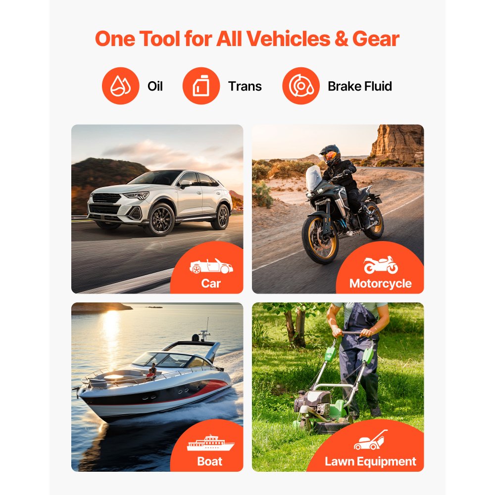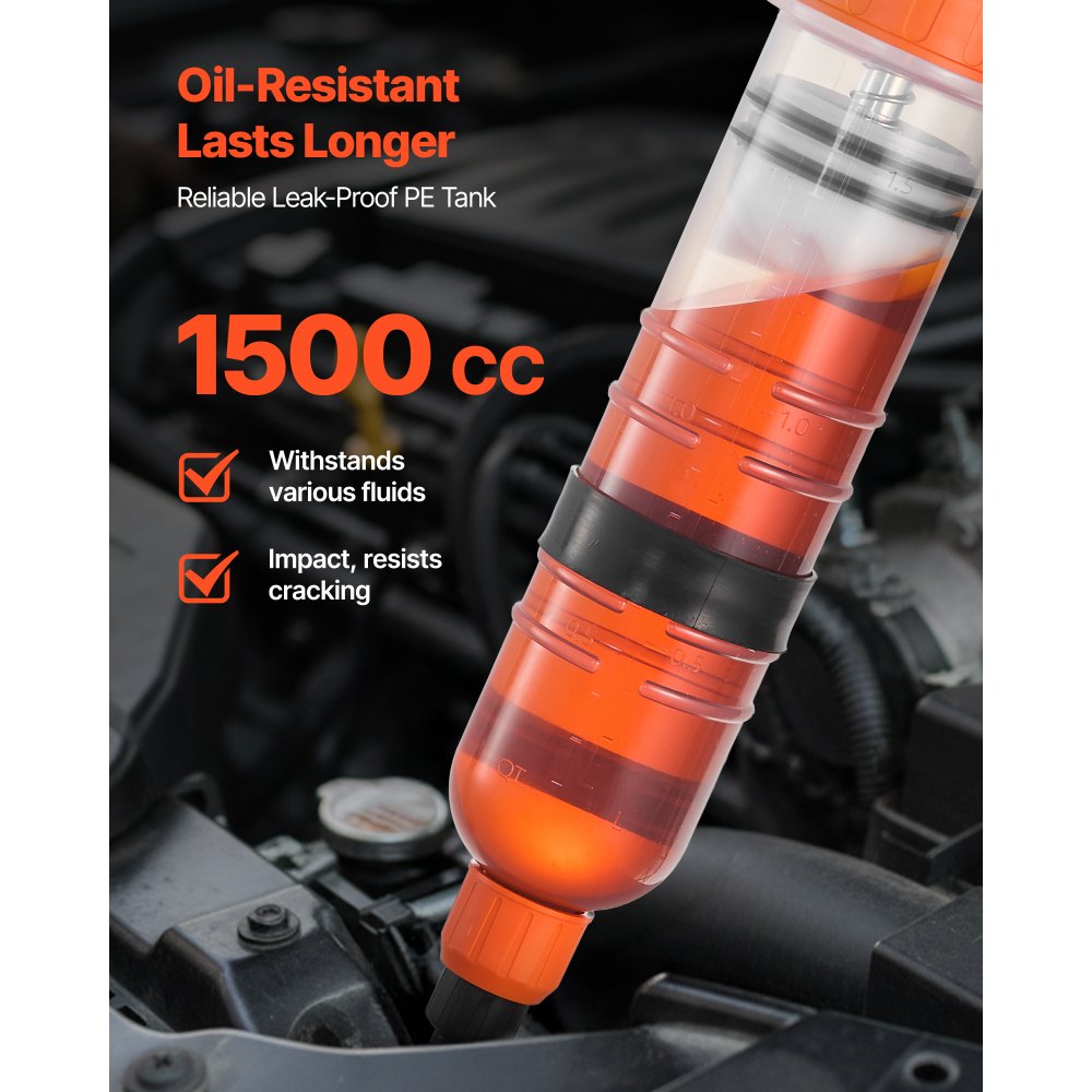 Αεροστεγής σφράγιση χωρίς στάλαξη: Αυτός ο απορροφητήρας υγρών χρησιμοποιεί διπλούς δακτυλίους εμβόλου από καουτσούκ και στόμιο με περιστροφική σφράγιση για να κλειδώνει τον αέρα. Αποτρέπετε τις διαρροές και τις σταγόνες από τους σωλήνες, διατηρείτε τον χώρο εργασίας τακτοποιημένο και παραμένετε συγκεντρωμένοι στην εργασία. Χειροκίνητη αντλία δύο κατευθύνσεων: Αυτή η χειροκίνητη αντλία εξαγωγής λαδιού δεν χρειάζεται ρεύμα ή γραμμή αέρα. Δημιουργείτε σταθερή αναρρόφηση για γρήγορη εξαγωγή ή αναπλήρωση—ιδανική για γκαράζ σπιτιών, επισκευές στο δρόμο και γρήγορες εργασίες σε συνεργεία. Προσαρμογείς Πολλαπλών Μεγεθών: Αυτό το κιτ αντλίας εξαγωγής υγρών περιλαμβάνει ποικίλους προσαρμογείς για άνετη εφαρμογή στη θύρα. Ταιριάζετε τα μεγέθη σε δευτερόλεπτα, τραβάτε ή διανέμετε με ακρίβεια και βοηθάτε στη μείωση των διαρροών και του καθαρισμού. Ευρεία συμβατότητα: Αυτός ο απορροφητήρας υγρού κενού χειρίζεται λάδι κινητήρα, ψυκτικό, υγρό φρένων και υγρό κιβωτίου ταχυτήτων. Συντηρείτε αυτοκίνητα, φορτηγά, μοτοσικλέτες, σκάφη και εξοπλισμό γκαζόν με ένα εργαλείο. Ανθεκτική δεξαμενή 1500 cc: Αυτή η ημιδιαφανής δεξαμενή PE του συλλέκτη λαδιού με ράβδο μέτρησης στάθμης λαδιού αντιστέκεται στη διάβρωση και τη γήρανση. Παρακολουθείτε τα επίπεδα με μια ματιά και αντιμετωπίζετε τη συχνή χρήση με σιγουριά.