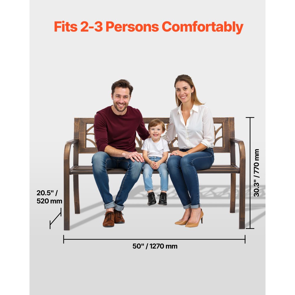 Κατασκευασμένο για εξωτερικούς χώρους: Αυτό το παγκάκι εξωτερικού χώρου διαθέτει σκελετό από χάλυβα υψηλής ποιότητας και ανθεκτική πλάτη από PVC που αντέχει στον ήλιο, τη βροχή και το χιόνι χωρίς να ραγίζει, να παραμορφώνεται ή να διαβρώνεται. Στιβαρό και σταθερό, είναι κατασκευασμένο για να διαρκεί και να παρέχει αξιόπιστη στήριξη. Απλό αλλά κομψό: Το παγκάκι βεράντας διαθέτει μια υπέροχη πλάτη με λουλουδάτο μοτίβο και κλασικό αντίκα μπρονζέ φινίρισμα, προσθέτοντας γοητεία και χαρακτήρα στον εξωτερικό σας χώρο καθισμάτων. Οι απαλές άκρες αποτρέπουν τα μπαλώματα και εξασφαλίζουν μια κομψή εμφάνιση. Άνετα καθίσματα: Με μήκος 50 ίντσες και δυνατότητα στήριξης έως και 237 κιλά, αυτό το παγκάκι βεράντας χωράει άνετα 2-3 άτομα. Το καμπυλωτό κάθισμα χαλαρώνει τους γοφούς και τα πόδια σας, ενώ η πλάτη και τα μπράτσα σε κλίση >90° ενθαρρύνουν μια πιο φυσική και ανοιχτή στάση σώματος. Γρήγορη και εύκολη συναρμολόγηση: Αυτό το παγκάκι πάρκου συναρμολογείται εύκολα—απλώς συνδέστε τα προσυναρμολογημένα εξαρτήματα. Περιλαμβάνονται όλα τα απαραίτητα εξαρτήματα και οδηγίες βήμα προς βήμα για μια γρήγορη εμπειρία εγκατάστασης. Ζεστή ατμόσφαιρα εξωτερικού χώρου: Είτε τοποθετείται σε κήπο, αίθριο, βεράντα, δίπλα στην πισίνα ή στην αυλή, αυτό το παγκάκι εξωτερικού χώρου δημιουργεί ένα ζεστό και φιλόξενο σημείο για να χαλαρώσετε και να απολαύσετε τον ήλιο με την οικογένεια και τους φίλους σας.