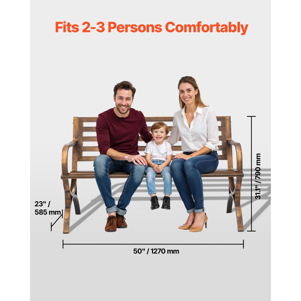 Κατασκευασμένο για εξωτερικούς χώρους: Αυτό το παγκάκι εξωτερικού χώρου διαθέτει ένα υψηλής ποιότητας ατσάλινο σκελετό που αντέχει στον ήλιο, τη βροχή και το χιόνι χωρίς να ραγίζει, να παραμορφώνεται ή να διαβρώνεται. Στιβαρό και σταθερό, είναι κατασκευασμένο για να διαρκεί και να παρέχει αξιόπιστη στήριξη. Απλό αλλά κομψό: Το παγκάκι βεράντας διαθέτει μια απλή πλάτη με τάβλες και κλασικό αντίκα μπρονζέ φινίρισμα, προσθέτοντας γοητεία και χαρακτήρα στον εξωτερικό σας χώρο καθισμάτων. Οι απαλές άκρες αποτρέπουν τα μπαλώματα και εξασφαλίζουν μια κομψή εμφάνιση. Άνετα καθίσματα: Με μήκος 50 ίντσες και δυνατότητα στήριξης έως και 237 κιλά, αυτό το παγκάκι βεράντας χωράει άνετα 2-3 άτομα. Το καμπυλωτό κάθισμα χαλαρώνει τους γοφούς και τα πόδια σας, ενώ η πλάτη και τα μπράτσα σε κλίση >90° ενθαρρύνουν μια πιο φυσική και ανοιχτή στάση σώματος. Γρήγορη και εύκολη συναρμολόγηση: Αυτό το παγκάκι πάρκου συναρμολογείται εύκολα—απλώς συνδέστε τα προσυναρμολογημένα εξαρτήματα. Περιλαμβάνονται όλα τα απαραίτητα εξαρτήματα και οδηγίες βήμα προς βήμα για μια γρήγορη εμπειρία εγκατάστασης. Ζεστή ατμόσφαιρα εξωτερικού χώρου: Είτε τοποθετείται σε κήπο, αίθριο, βεράντα, δίπλα στην πισίνα ή στην αυλή, αυτό το παγκάκι εξωτερικού χώρου δημιουργεί ένα ζεστό και φιλόξενο σημείο για να χαλαρώσετε και να απολαύσετε τον ήλιο με την οικογένεια και τους φίλους σας.