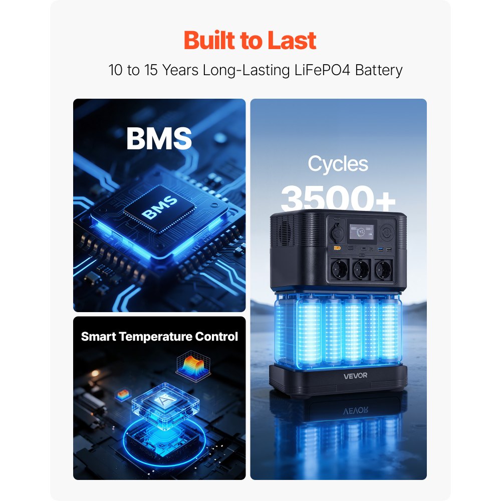 Αξιόπιστη φορητή τροφοδοσία: Απολαύστε σταθερή τροφοδοσία για backup στο σπίτι ή υπαίθριες περιπέτειες με αυτόν τον φορητό σταθμό παραγωγής ενέργειας 1200W 806Wh. Μπορεί να τροφοδοτεί ταυτόχρονα κινητά τηλέφωνα, ψυγεία αυτοκινήτου, ηχεία και κάμερες κατά τη διάρκεια της κατασκήνωσης για περίπου 9 ώρες. Τροφοδοτεί έως και 9 συσκευές: Διαθέτει 3 πρίζες AC (250V/16A), 1 θύρα Type-C (5V/2.4A), 1 θύρα Type-C PD (65W), 1 θύρα USB QC (18W), 1 θύρα USB (5V/2.4A), 1 πρίζα αυτοκινήτου (12V/8.3A) και 1 θύρα XT60 (20V/10A) για την ταυτόχρονη τροφοδοσία πολλών συσκευών. Ευέλικτες επιλογές φόρτισης: Φορτίστε τον σταθμό παραγωγής ενέργειας με 3 βολικούς τρόπους — φόρτιση AC (περίπου 7,5 ώρες), φορτιστή αυτοκινήτου (περίπου 9 ώρες) ή ηλιακούς συλλέκτες (δεν περιλαμβάνονται). Είτε στο σπίτι είτε σε εξωτερικούς χώρους, η εφεδρική μπαταρία LiFePO4 παρέχει αποτελεσματική αναπλήρωση ενέργειας. Κατασκευασμένο για να διαρκεί: Κατασκευασμένο με μπαταρία LiFePO₄ υψηλής ποιότητας που αντέχει έως και 3500 κύκλους φόρτισης και προσφέρει διάρκεια ζωής 10 έως 15 χρόνια. Προστατεύεται από προηγμένο σύστημα διαχείρισης διακυμάνσεων της μπαταρίας (BMS) για βελτιωμένη ασφάλεια, εξασφαλίζοντας μια πιο αξιόπιστη και μακράς διαρκείας τροφοδοσία ρεύματος. Ελαφρύ και φορητό: Συμπαγές και εύκολο στη μεταφορά, αυτό το ηλιακό σύστημα παραγωγής ενέργειας είναι ένας αξιόπιστος σύντροφος για εξωτερικούς χώρους που σας επιτρέπει να φορτίζετε συσκευές οποιαδήποτε στιγμή, οπουδήποτε. Ιδανικό για εφεδρική χρήση έκτακτης ανάγκης στο σπίτι και κάμπινγκ σε εξωτερικούς χώρους.