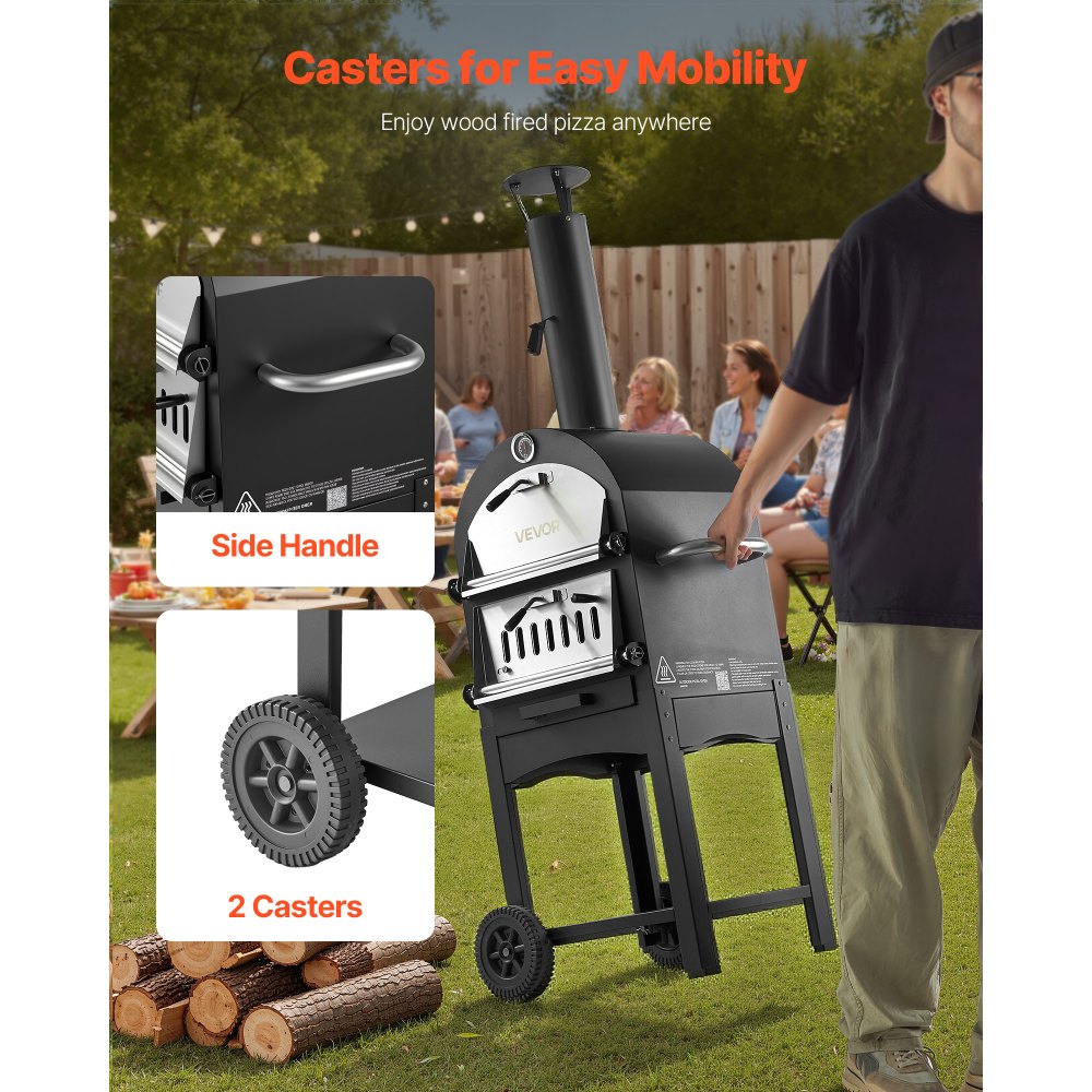 Τέλειο ψήσιμο: Ο φούρνος μας με πέλλετ 12" διαθέτει ενσωματωμένο θερμόμετρο που εμφανίζει έως και 1000℉, επιτρέποντάς σας να ελέγχετε με ακρίβεια τη θερμότητα της φωτιάς. Η επιφάνεια ψεκασμού σίδερου υψηλής θερμικής αγωγιμότητας εξασφαλίζει γρήγορο και ομοιόμορφο ψήσιμο για τέλειες πίτσες κάθε φορά. Σχεδιασμός διπλής στρώσης: Αυτός ο φούρνος πίτσας εξωτερικού χώρου διαθέτει σχεδιασμό δύο στρώσεων: τον άνω θάλαμο ψησίματος και το κάτω διαμέρισμα κάρβουνου. Περιλαμβάνει ένα συρτάρι στάχτης και ένα μεγάλο δίσκο κάρβουνου, κάνοντας τον καθαρισμό εύκολο και την κατανομή θερμότητας αποτελεσματική. Τροχοί και λαβή που εξοικονομούν εργασία: Εξοπλισμένος με στιβαρούς διπλούς τροχούς και πλαϊνή λαβή, αυτός ο φούρνος πίτσας μετακινείται εύκολα σε οποιαδήποτε εξωτερική τοποθεσία - από την αυλή μέχρι το κάμπινγκ - και αποθηκεύεται εύκολα όταν δεν χρησιμοποιείται. Πλήρη αξεσουάρ: Περιλαμβάνει μια πέτρα πίτσας που διατηρεί τη θερμότητα για τραγανές ζύμες, δύο ταψιά από ανοξείδωτο ατσάλι που δεν σκουριάζουν και δύο ανθεκτικές σιδερένιες σχάρες με κάρβουνο - όλα όσα χρειάζεστε για τις υπαίθριες περιπέτειές σας στο φούρνο πίτσας Ευρεία εφαρμογή: Ιδανικός για αυλές, κάμπινγκ, πάρκα και εξορμήσεις, αυτός ο φούρνος πίτσας pellet προσφέρει αυθεντική γεύση από ξύλα και αξέχαστες εμπειρίες μαγειρέματος όπου κι αν πάτε.