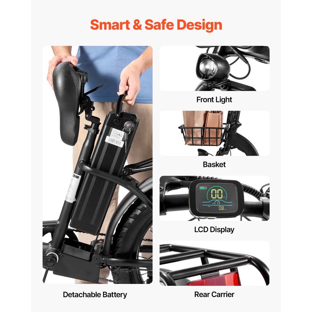 Μακράς Διάρκειας Αυτονομία: Η αφαιρούμενη μπαταρία 25Ah τροφοδοτεί το ηλεκτρικό μας ποδήλατο για έως και 70 χλμ. σε αμιγώς ηλεκτρική λειτουργία για μετακινήσεις ή ταξίδια το Σαββατοκύριακο. Με χρόνο φόρτισης 12-14 ωρών και αδιάβροχο, αντικλεπτικό σχεδιασμό, η μπαταρία διατηρεί την οδήγησή σας αξιόπιστη, σε βροχή και ήλιο. Άνετη ανάβαση: Με κινητήρα 36V 250W, αυτό το πτυσσόμενο ηλεκτρικό ποδήλατο προσφέρει ισχυρή απόδοση με μέγιστο φορτίο 120 kg/264,6 lbs και μπορεί να αντιμετωπίσει κλίσεις έως 20°. Σε συνδυασμό με σύστημα ταχυτήτων 7 ταχυτήτων, προσαρμόζεται σε ποικίλα αστικά εδάφη. 3+1 Λειτουργίες Οδήγησης: Το ηλεκτρικό ποδήλατο ενηλίκων υποστηρίζει λειτουργίες με υποβοήθηση πεταλιού, πλήρως ηλεκτρική και μόνο με πετάλια, επιτρέποντάς σας να τις αλλάζετε ελεύθερα για περισσότερη διασκεδαστική οδήγηση. Περιλαμβάνει επίσης λειτουργία βαδίσματος χαμηλής ταχύτητας, διευκολύνοντας την ώθηση του ποδηλάτου σε ανηφόρα. Ελαφρύ & Πτυσσόμενο: Διαθέτοντας σχεδιασμό γρήγορης αναδίπλωσης 3 σημείων, αυτό το ηλεκτρικό ποδήλατο μπορεί να διπλωθεί και να ανυψωθεί με το ένα χέρι, χωρώντας εύκολα στο πορτμπαγκάζ ενός αυτοκινήτου, στη σχάρα αποσκευών του μετρό ή στη γωνία ενός διαμερίσματος. Λύνει το πρόβλημα του περιορισμένου χώρου στην πόλη. Άνεση & Ασφάλεια: Η οθόνη LCD του πτυσσόμενου ηλεκτρικού ποδηλάτου μας δείχνει την ταχύτητα και το επίπεδο μπαταρίας. Τα φουσκωτά ελαστικά διαχειρίζονται εύκολα τους λιθόστρωτους/βρεγμένους δρόμους. Τα δισκόφρενα προσφέρουν σταθερά φρένα, ενώ ο προβολέας LED και ο αναβοσβήσιμος πίσω ανακλαστήρας εξασφαλίζουν ασφαλείς νυχτερινές βόλτες.