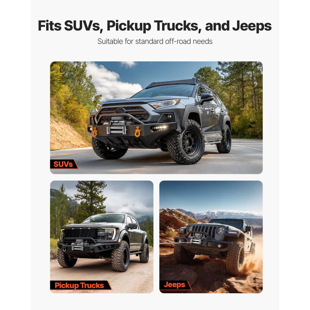 Ισχυρή έλξη 12000 λίβρες: Αυτό το ηλεκτρικό βαρούλκο προσφέρει δύναμη έλξης 12.000 λίβρες, κάνοντας την ανάκτηση SUV ή pickup από λάσπη ή άμμο γρήγορη και χωρίς άγχος χωρίς ανησυχίες για παραμόρφωση του γραναζιού. Υψηλής Ισχύος Διάσωσης: Αυτός ο κινητήρας 5,5 ίππων του βαρούλκου τζιπ με πλανητικό γρανάζι 3 σταδίων 265:1 προσφέρει σταθερή δύναμη έλξης. Λειτουργεί για πολλές ώρες χωρίς υπερθέρμανση, προσφέροντάς σας αξιόπιστη δύναμη για ανάκτηση εκτός δρόμου. Ανθεκτικό σε όλες τις καιρικές συνθήκες: Το χαλύβδινο σχοινί 12 κλώνων 7/20 ίντσας x 85 πόδια αντιστέκεται στο ηλιακό φως, τη φθορά και το σπάσιμο. Με αμάξωμα από κράμα αλουμινίου, το βαρούλκο του φορτηγού παραμένει ανθεκτικό στη σκόνη, τη βροχή και το σκληρό έδαφος. Ασφαλές τηλεχειριστήριο: Το ασύρματο τηλεχειριστήριο 59 ποδιών του βαρούλκου σάς επιτρέπει να διατηρείτε ασφαλή απόσταση κατά τη λειτουργία. Ένα ενσύρματο τηλεχειριστήριο 9,8 ποδιών περιλαμβάνεται ως εφεδρικό, ιδανικό για ορεινά μονοπάτια ή περιοχές με αδύναμο σήμα. Ευρεία συμβατότητα: Το καθολικό σχέδιο τοποθέτησης ταιριάζει στα περισσότερα SUV, pickup και τζιπ. Το σετ βαρούλκου ανάκτησης περιλαμβάνει καλώδιο fairlead, γάντζο και καλώδια τροφοδοσίας—έτοιμα για γρήγορη εγκατάσταση και χρήση.