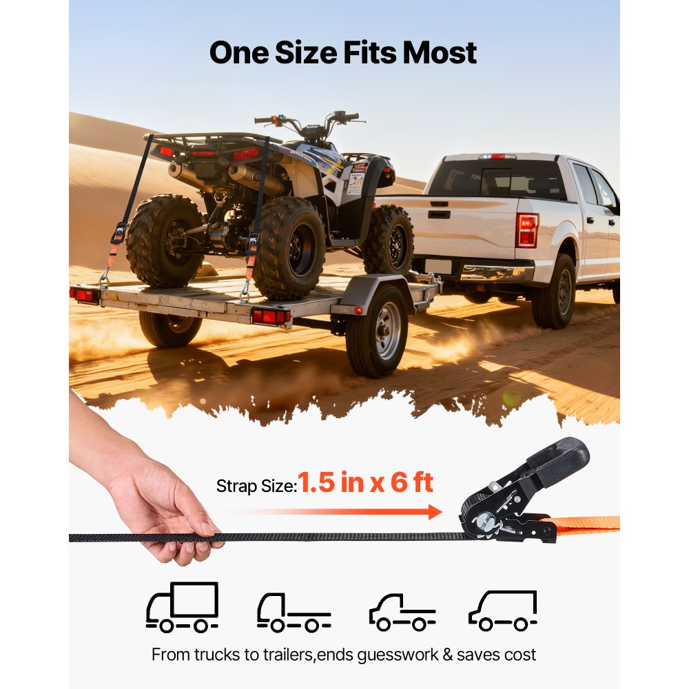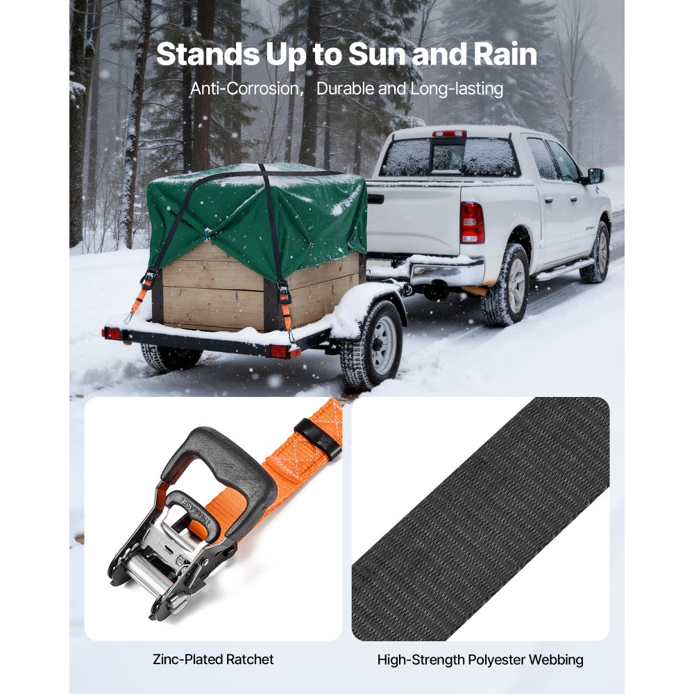 Ανθεκτικότατες Ονομαστικές Ονομασίες Φορτίου: Αυτός ο ιμάντας με καστάνια προσφέρει φορτίο εργασίας 1212 λίβρες και αντοχή σε θραύση 2425 λίβρες, έτσι ώστε ο εξοπλισμός σας να παραμένει στη θέση του σε στάσεις και χτυπήματα. Είναι μια καθαρή νίκη για ποδήλατα, εργαλεία και ογκώδη κουτιά. Ένας ιμάντας, πολλές εργασίες: Ο ιμάντας πολυεστέρα 1,5 ίντσας x 6 ποδιών προσφέρει σταθερή εμβέλεια και δύναμη συγκράτησης. Μπορείτε να τυλίξετε και να ασφαλίσετε τα περισσότερα φορτία - από SUV μέχρι φορτηγάκια - έτσι ώστε τα έπιπλα, ο εξοπλισμός και η λαβή να παραμένουν τακτοποιημένα στη θέση τους. Ανθεκτικότητα στη σκουριά: Η καστάνια και τα εξαρτήματα με επιψευδαργυρωμένη επίστρωση συνδυάζονται με ιμάντες από πολυεστέρα ανθεκτικό στην τριβή. Το σετ ιμάντων πρόσδεσης φορτίου αντέχει στον ήλιο, τη βροχή και τη βρωμιά του δρόμου για αξιόπιστη και μακράς διαρκείας πρόσδεση. Γρήγορο κούμπωμα: Τα γάντζοι καραμπίνερ με φαρδύ στόμιο στερεώνονται γρήγορα σε καρότσες φορτηγών, δακτυλίους ρυμουλκούμενου, δακτυλίους D και άγκυρες αλυσίδας. Ο ιμάντας πρόσδεσης με καστάνια ασφαλίζει για να μειώσει το τράνταγμα και την ολίσθηση κατά τη διάρκεια των κινήσεων και των μετακινήσεων. Εύκολο Σύσφιγμα με Μόνη Χρήση: Η καστάνια με μοχλό σάς επιτρέπει να ασφαλίζετε τον ιμάντα πρόσδεσης του φορτηγού γρήγορα και ομοιόμορφα. Ένα άτομο μπορεί να ασφαλίσει ένα φορτίο από την αρχή μέχρι το τέλος, ώστε να ξεκινήσετε νωρίτερα.