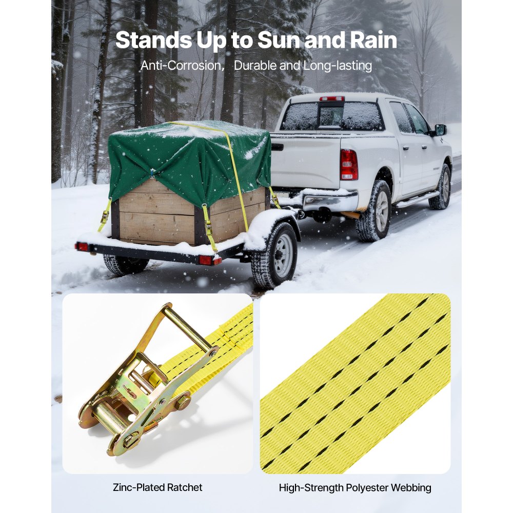 Ανθεκτικότατες Ονομαστικές Ονομασίες Φορτίου: Αυτός ο ιμάντας με καστάνια προσφέρει φορτίο εργασίας 3300 λίβρες και αντοχή σε θραύση 6600 λίβρες, έτσι ώστε ο εξοπλισμός σας να παραμένει στη θέση του σε στάσεις και χτυπήματα. Είναι μια καθαρή νίκη για ποδήλατα, εργαλεία και ογκώδη κουτιά. Ένας ιμάντας, πολλές εργασίες: Ο ιμάντας πολυεστέρα 1,5 ίντσας x 10 ποδιών προσφέρει σταθερή εμβέλεια και δύναμη συγκράτησης. Μπορείτε να τυλίξετε και να ασφαλίσετε τα περισσότερα φορτία - από SUV μέχρι φορτηγάκια - έτσι ώστε τα έπιπλα, ο εξοπλισμός και η λαβή να παραμένουν τακτοποιημένα στη θέση τους. Ανθεκτικότητα στη σκουριά: Η καστάνια και τα εξαρτήματα με επιψευδαργυρωμένη επίστρωση συνδυάζονται με ιμάντες από πολυεστέρα ανθεκτικό στην τριβή. Το σετ ιμάντων πρόσδεσης φορτίου αντέχει στον ήλιο, τη βροχή και τη βρωμιά του δρόμου για αξιόπιστη και μακράς διαρκείας πρόσδεση. Γρήγορη σύνδεση: Τα διπλά άγκιστρα J με φαρδύ στόμιο ασφαλίζουν γρήγορα στις ράγες φορτηγών, στα σημεία πρόσδεσης τρέιλερ και στους δακτυλίους D. Ο ιμάντας πρόσδεσης με καστάνια σφίγγει ομαλά για να διατηρεί το φορτίο σφιχτό για μετακινήσεις επίπλων, εξωτερικών εργαλείων και εξοπλισμού. Εύκολο Σύσφιγμα με Μόνη Χρήση: Η καστάνια με μοχλό σάς επιτρέπει να ασφαλίζετε τον ιμάντα πρόσδεσης του φορτηγού γρήγορα και ομοιόμορφα. Ένα άτομο μπορεί να ασφαλίσει ένα φορτίο από την αρχή μέχρι το τέλος, ώστε να ξεκινήσετε νωρίτερα.