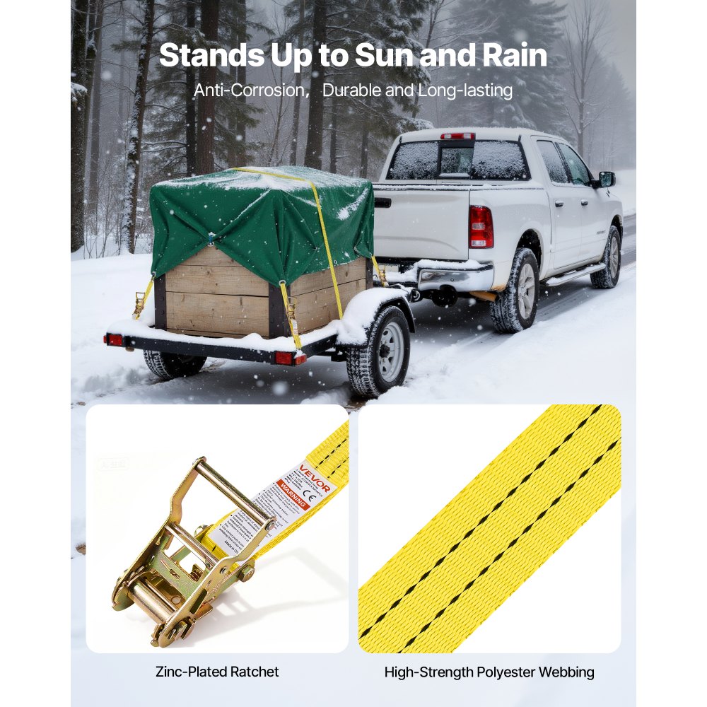 Αριθμός μοντέλου αντικειμένου: JC25015X20G4PCSΜέγεθος ιμάντα: 1,5 ίντσες x 20 πόδια / 38,1 x 6096 χιλιοστάΠοσότητα: 4Ονομαστικό φορτίο: 662 κιλά / 1460 λίβρεςΑντοχή σε θραύση: 4400 λίβρες / 2000 κιλάΥλικό: Χάλυβας άνθρακα 45# & Πολυεστέρας