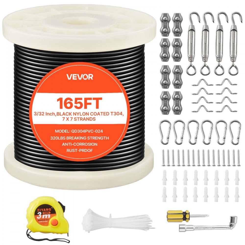 Premium 304 Stainless: Αυτό το συρματόσχοινο από χάλυβα χρησιμοποιεί ανοξείδωτο χάλυβα 304 με αδιάβροχο περίβλημα PVC για αντοχή στη σκουριά. Προσφέρετε σφιχτή τοποθέτηση 7x7 και ομαλή αίσθηση χωρίς γρέζια για πιο ασφαλή χειρισμό. Καλώδιο 3/32 ίντσας x 165 πόδια: Αυτό το χαλύβδινο καλώδιο παραμένει εύκαμπτο με σταθερή απόδοση εφελκυσμού. Μπορείτε εύκολα να δρομολογήσετε μπάρες σκάλας και να κάνετε μόνοι σας εργασίες, στη συνέχεια να κόψετε και να τσακίσετε για ένα καθαρό φινίρισμα. Αντοχή σε θραύση 450 λίβρες: Αυτό το πλεγμένο σύρμα υποστηρίζει έως και 450 λίβρες για καθημερινές εργασίες. Ασφαλίζετε κιγκλιδώματα, φράχτες, φωτιστικά, σχοινιά απλώματος, πέργκολες και κρεμάστρες ταΐστρας πουλιών με σιγουριά. Πλήρες κιτ εξαρτημάτων: Περιλαμβάνει 8 σφιγκτήρες, 4 εντατήρες, 16 βίδες, 16 άγκυρες επέκτασης, 6 καραμπίνερ, 8 γάντζους λαβής, 1 κατσαβίδι, 1 κλειδί υποδοχής, 1 μεζούρα και 100 δεματικά καλωδίων για γρήγορες εγκαταστάσεις. Εγκατάσταση φιλική προς το DIY: Αυτό το ρολό συρματόσχοινου κόβει στο απαραίτητο μήκος και τα γάντια που περιλαμβάνονται βοηθούν στην ασφάλιση των χεριών κατά το κλάδεμα και το πτύχωμα. Ολοκληρώνετε γρήγορα και τακτοποιημένα τα κομμάτια με ασφάλεια.