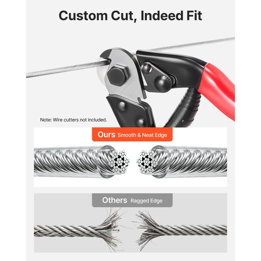 Premium 304 Stainless: Αυτό το συρματόσχοινο από χάλυβα χρησιμοποιεί ανοξείδωτο χάλυβα 304 με αδιάβροχο περίβλημα PVC για αντοχή στη σκουριά. Προσφέρετε σφιχτή τοποθέτηση 7x7 και ομαλή αίσθηση χωρίς γρέζια για πιο ασφαλή χειρισμό. Καλώδιο 3/16 ίντσας x 200 πόδια: Αυτό το χαλύβδινο καλώδιο παραμένει εύκαμπτο με σταθερή απόδοση εφελκυσμού. Μπορείτε εύκολα να δρομολογήσετε μπάρες σκάλας και να κάνετε μόνοι σας εργασίες, στη συνέχεια να κόψετε και να πρεσάρετε για ένα καθαρό φινίρισμα. Αντοχή σε θραύση 1600 λίβρες: Αυτό το πλεγμένο σύρμα υποστηρίζει έως και 1600 λίβρες για καθημερινές εργασίες. Ασφαλίζετε κιγκλιδώματα, φράχτες, φωτιστικά, σχοινιά απλώματος, πέργκολες και κρεμάστρες ταΐστρας πουλιών με σιγουριά. Πλήρες κιτ εξαρτημάτων: Παραλαμβάνετε 8 σφιγκτήρες, 8 αλουμινένια μανίκια, 8 δαχτυλήθρες, 4 εντατήρες, 26 βίδες με αυτοκόλλητο σπείρωμα, 26 άγκυρες διαστολής, 4 καραμπίνερ, 26 ξυλόβιδες και 12 γάντζους λαβής για γρήγορες εγκαταστάσεις. Εγκατάσταση φιλική προς το DIY: Αυτό το ρολό συρματόσχοινου κόβει στο απαραίτητο μήκος και τα γάντια που περιλαμβάνονται βοηθούν στην ασφάλιση των χεριών κατά το κλάδεμα και το πτύχωμα. Ολοκληρώνετε γρήγορα και τακτοποιημένα τα κομμάτια με ασφάλεια.