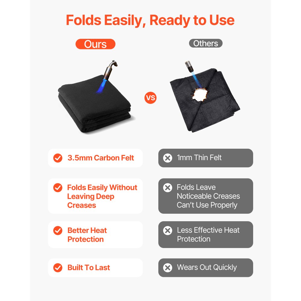 Ανθεκτικό σε υψηλές θερμοκρασίες: Η κουβέρτα συγκόλλησης VEVOR 2 τεμαχίων 20" x 36" από ανθρακονήματα αντέχει σε υψηλές θερμοκρασίες έως και 1800°F (982℃), προσφέροντας εξαιρετική αντοχή στη θερμότητα και τη φλόγα για προστασία από σπινθήρες, φλόγες, λιωμένο μέταλλο και έντονη θερμότητα. Βελτιωμένη Ανθεκτικότητα: Κατασκευασμένη από ίνες άνθρακα πάχους 3,5 mm, η θερμοανθεκτική κουβέρτα συγκόλλησης μας είναι ανθεκτική στο σκίσιμο και τη φθορά. Οι ενισχυμένες άκρες με θερμική συγκόλληση αποτρέπουν το ξεφτίλισμα, το ξέφτισμα ή τη ζημιά για μακροχρόνια αξιοπιστία. Εύκολη αποθήκευση: Μαλακό και πτυσσόμενο, αυτό το μονωτικό υπόστρωμα συγκόλλησης διπλώνει εύκολα με ελάχιστες τσακίσεις για συμπαγή αποθήκευση. Βολικό για μεταφορά μεταξύ των εργοταξίων, εξοικονομεί χώρο ενώ παράλληλα διατηρεί αξιόπιστη προστασία σε κοντινή απόσταση. Αξιόπιστη προστασία: Αυτή η κουβέρτα συγκόλλησης με επιβράδυνση φλόγας είναι η κορυφαία επιλογή για την ασφάλεια κατά τη συγκόλληση, προστατεύοντας τα δάπεδα, τους τοίχους, τους πάγκους εργασίας και τον εξοπλισμό από σπινθήρες και υπερβολική θερμότητα. Είτε σε εργαστήρια, γκαράζ είτε σε εργοτάξια, παρέχει αξιόπιστη προστασία. Ευρείες εφαρμογές: Περισσότερο από απλή συγκόλληση, αυτή η κουβέρτα συγκόλλησης από τσόχα άνθρακα είναι επίσης απαραίτητη για την κοπή μετάλλων, τη σχάρα ή την πυρασφάλεια στο κάμπινγκ. Παρέχει αξιόπιστη προστασία από θερμότητα, φλόγα και σπινθήρες, επιτρέποντάς σας να συγκολλάτε με μεγαλύτερη σιγουριά.