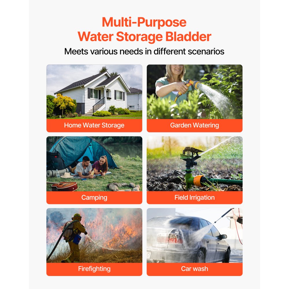 Μεγάλη χωρητικότητα 63,4 γαλονιών: Με εξαιρετικά μεγάλη χωρητικότητα 63,4 γαλονιών (240 λίτρα), αυτή η κύστη αποθήκευσης νερού VEVOR είναι ιδανική για οικιακή χρήση, κάμπινγκ, πότισμα κήπου, εγκαταστάσεις τροχόσπιτων, αντοχή στην ξηρασία και παροχή νερού έκτακτης ανάγκης. Πτυσσόμενη και φορητή, εύκολη στη μεταφορά οπουδήποτε. Ανθεκτικό Υλικό: Γίνετε η αξιόπιστη λύση μακροπρόθεσμης αποθήκευσης νερού. Η δεξαμενή νερού για τροχόσπιτα μας είναι κατασκευασμένη από ανθεκτικό υλικό PVC διπλής στρώσης 1000D, το οποίο είναι ανθεκτικό στη βροχή, στη φωτιά και στη φθορά, εξασφαλίζοντας εξαιρετική απόδοση σε διάφορες συνθήκες. Εξαιρετική Σφράγιση: Το δοχείο αποθήκευσης νερού μας χρησιμοποιεί τεχνολογία συγκόλλησης υψηλής θερμοκρασίας και ενισχυμένες σφραγίδες στις θύρες για να εξασφαλίσει μια στεγανή και στεγανή σφράγιση. Η ισχυρή σφράγιση εξασφαλίζει επιπλέον ηρεμία για την οικιακή σας χρήση και τις υπαίθριες περιπέτειές σας. Αποδοτική αποθήκευση νερού: Αυτή η πτυσσόμενη φορητή δεξαμενή νερού διαθέτει μεγάλες θύρες εισόδου και εξόδου - με διάμετρο εισόδου OD 38mm/1,5" και ID 32mm, και διάμετρο εξόδου OD 32mm/1,25" και ID 25mm, που συνδέεται εύκολα με τον εύκαμπτο σωλήνα για γρήγορη αποθήκευση νερού. Ευρείες εφαρμογές: Αυτή η φορητή τσάντα αποθήκευσης μαλακού νερού έχει σχεδιαστεί για διάφορα σενάρια, λειτουργώντας τόσο ως λύση αποθήκευσης μη πόσιμου νερού όσο και ως σύστημα συλλογής βρόχινου νερού. Προσφέρει μια απλή και αποτελεσματική λύση για τη διαχείριση του νερού.