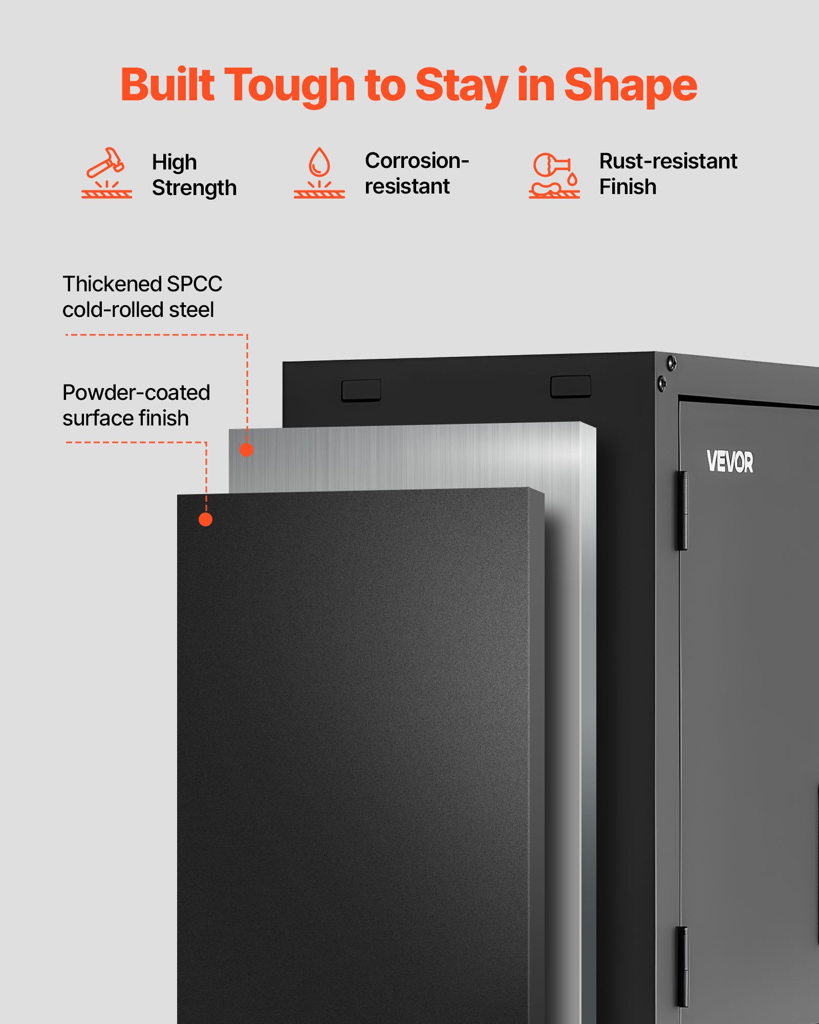 Ισχυρή και ανθεκτική κατασκευή: Κατασκευασμένο από παχύ χάλυβα ψυχρής έλασης SPCC με φινίρισμα με ηλεκτροστατική βαφή για αντοχή στη σκουριά και τη διάβρωση, αυτό το επιτοίχιο ντουλάπι αποθήκευσης παραμένει στιβαρό και αξιόπιστο για χρόνια.