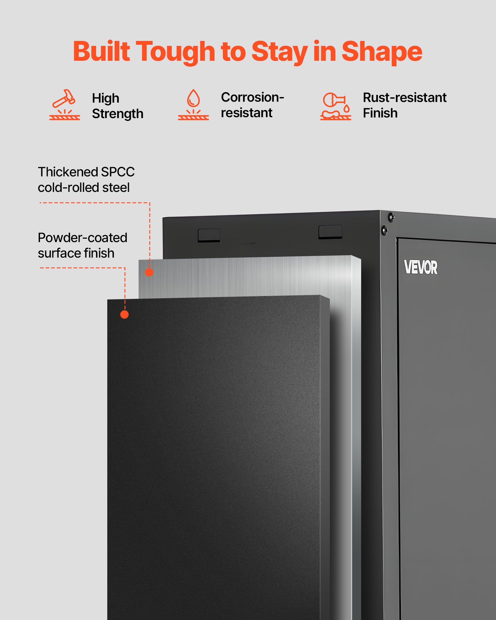 Ισχυρή και ανθεκτική κατασκευή: Κατασκευασμένο από παχύ χάλυβα ψυχρής έλασης SPCC με φινίρισμα με ηλεκτροστατική βαφή για αντοχή στη σκουριά και τη διάβρωση, αυτό το επιτοίχιο ντουλάπι αποθήκευσης παραμένει στιβαρό και αξιόπιστο για χρόνια.