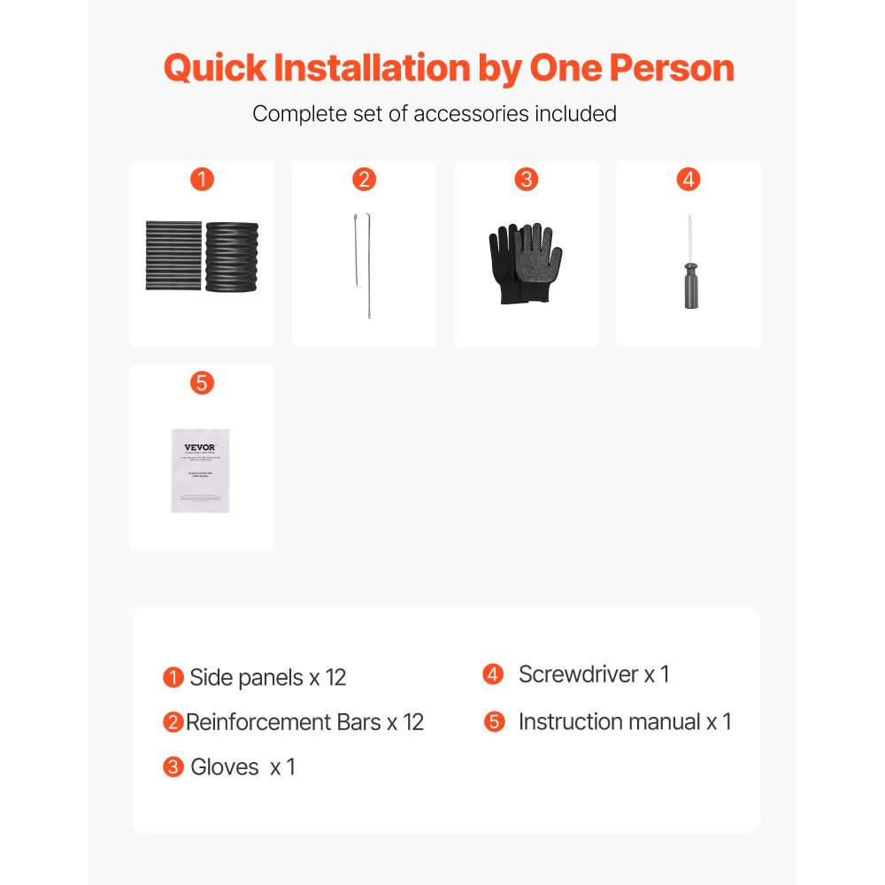Δημιουργήστε έναν εκπληκτικό κήπο: Το υπερυψωμένο παρτέρι μας 2,5 x 1,6 x 2,5 μέτρων παρέχει άφθονο χώρο ανάπτυξης για τα φυτά σας. Το βάθος του είναι ιδανικό για διάφορα φυτά. Καλλιεργήστε λαχανικά, φρούτα, λουλούδια και βότανα σε κήπους, αγροκτήματα, χωράφια ή ανοιχτούς χώρους. Ανθεκτικό και αξιόπιστο: Κατασκευασμένο από γαλβανισμένα πάνελ 0,4 mm, ανθεκτικά στη σκουριά, με ηλεκτροστατική βαφή πούδρας, αυτό το μεταλλικό υπερυψωμένο παρτέρι είναι στιβαρό και κατασκευασμένο για να διαρκεί. Οι 12 εσωτερικές ράβδοι σε σχήμα Χ προσθέτουν σταθερότητα για μακροχρόνια χρήση σε εξωτερικούς χώρους. Ασφαλής χρήση: Η υπερυψωμένη γλάστρα μας διαθέτει κυλιόμενες άκρες και στρογγυλεμένες γωνίες για να μειωθεί η πιθανότητα τραυματισμού κατά τη χρήση. Συνοδεύεται επίσης από ένα ζευγάρι γάντια για την ελαχιστοποίηση των γρατζουνιών από τα χέρια, επιτρέποντάς σας να απολαμβάνετε μια ομαλή εμπειρία κηπουρικής. Εύκολη εγκατάσταση: Με ολοκληρωμένες βίδες και προ-τρυπημένο σχεδιασμό, το υπερυψωμένο παρτέρι μπορεί να συναρμολογηθεί εύκολα ακολουθώντας το εγχειρίδιο. Χρειάζονται μόνο 15 λεπτά για να τοποθετηθεί χωρίς να απαιτούνται επιπλέον εργαλεία, καθιστώντας το ιδανικό για λάτρεις της κηπουρικής, ακόμη και για αρχάριους. Τι θα πάρετε: Το υπερυψωμένο παρτέρι μας περιλαμβάνει 12 πλαϊνά πάνελ, 12 εγκάρσιες ράβδους, 1 ζευγάρι γάντια, 1 κατσαβίδι και 1 εγχειρίδιο χρήστη