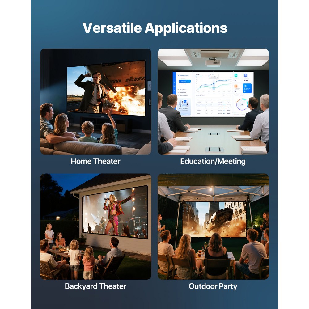Εξαιρετικά & Ζωντανά Οπτικά: Κατασκευασμένη από υλικό υψηλής ανακλαστικότητας και χωρίς ρυτίδες, η οθόνη προβολέα προσφέρει οπτικά εφέ 4K και υψηλής ευκρίνειας 3D με κλείστρο. Το κάδρο αποδίδεται λεπτομερώς, εξασφαλίζοντας μια άψογη, καθηλωτική κινηματογραφική εμπειρία σε σκοτεινό και φωτεινό περιβάλλον. Ευρείες γωνίες θέασης: Με σχεδιασμό προβολής ευρείας γωνίας 160°, η οθόνη προβολής μας διασφαλίζει ότι οι θεατές μπορούν να καταγράφουν ευκρινείς, καθαρές εικόνες από οποιαδήποτε θέση. Αυτό βελτιώνει την ευελιξία θέασης, καθιστώντας κάθε γωνιά ένα εξαιρετικό σημείο για να απολαύσετε την παράσταση. Ευκρινής Οθόνη και από τις Δύο Πλευρές: Ο προβολέας υποστηρίζει προβολή από εμπρός και από πίσω, η καθαρότητα διπλής όψης και το υλικό υψηλής διαπερατότητας εξασφαλίζουν ευκρινή απεικόνιση και από τις δύο πλευρές, μοιράζοντας ζωντανά και ελκυστικά οπτικά εφέ με όσους σας ενδιαφέρουν. Εγκατάσταση σε 4 βήματα: Δεν χρειάζονται τα περίπλοκα βήματα εγκατάστασης, απλώς εγκαθιστάτε την οθόνη σε 4 εύκολα βήματα για γρήγορη, εξοικονόμηση χρόνου και εργασίας. Ευέλικτη χρήση: Πείτε αντίο στους περιορισμούς των μικρών τηλεοράσεων ή οθονών. Η οθόνη προβολέα μας προσφέρει μια ιδιωτική εικόνα κινηματογραφικής ποιότητας οποιαδήποτε στιγμή, οπουδήποτε. Είτε βρίσκεστε σε εσωτερικό είτε σε εξωτερικό χώρο, κάθε θεατής μπορεί να απολαύσει ζωντανά, κρυστάλλινα γραφικά.