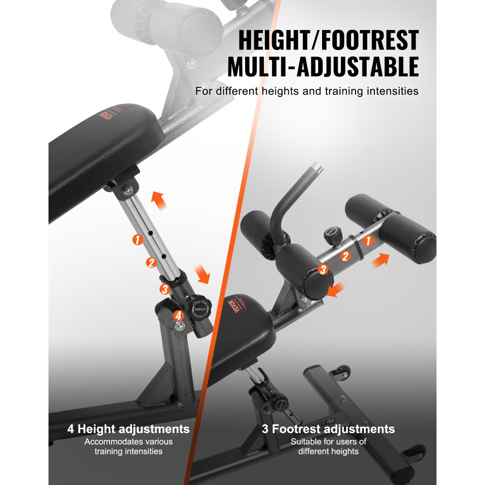 Ρυθμιζόμενο ύψος και γάντζο ποδιών: Προσαρμόστε την προπόνησή σας με ρύθμιση ύψους 4 επιπέδων και μήκους γάντζο ποδιών 3 επιπέδων. Αυτός ο πάγκος καθισμάτων ταιριάζει σε χρήστες όλων των υψών για προπόνηση ολόκληρου του σώματος, καθιστώντας τον μια ευέλικτη και πρακτική προσθήκη σε οποιοδήποτε γυμναστήριο στο σπίτι. Ανθεκτικός και στιβαρός σχεδιασμός: Ο πάγκος προπόνησής μας είναι κατασκευασμένος από χοντρό, ανθεκτικό ατσάλι και ενισχυμένο πλαίσιο για αντοχή στο φορτίο και σταθερότητα. Είναι ιδανικός για προπονήσεις υψηλής έντασης και χρήση βαρέων αλτήρων, επιτρέποντας σε χρήστες όλων των μεγεθών να προπονούνται με ασφάλεια. Πυκνωμένο μαξιλάρι για άνεση: Ο πάγκος κοιλιακών μας διαθέτει ένα παχύ επενδεδυμένο κάθισμα με μαλακή, αντιολισθητική και ανθεκτική στον ιδρώτα επιφάνεια. Παρέχει σταθερή στήριξη και ανάκαμψη, μειώνει την πίεση και την κόπωση κατά τη διάρκεια έντονων προπονήσεων και βελτιώνει τη συνολική εμπειρία. Λαβή αντίστροφης σύσπασης: Αυτός ο πάγκος καθισμάτων βοηθά στη σταθεροποίηση του σώματός σας κατά τη διάρκεια των ανυψώσεων των ποδιών, των αντίστροφων σύσπασης και των λοξών στροφών, μειώνοντας την ανεπιθύμητη κίνηση και βελτιώνοντας τις εμπλοκές των κοιλιακών, κάνοντας τους αρχάριους να σηκώνονται με ασφάλεια με λιγότερη δυσκολία και κίνδυνο τραυματισμού. Πολυλειτουργικός πάγκος άσκησης: Αυτός ο ευέλικτος πάγκος κοιλιακών σάς επιτρέπει να γυμνάζετε πολλαπλές μυϊκές ομάδες στο σπίτι, χωρίς να χρειάζεστε γυμναστήριο. Ιδανικός για αρχάριους, λάτρεις της γυμναστικής και επαγγελματίες, υποστηρίζει ασκήσεις ενδυνάμωσης τόσο για εισαγωγικό όσο και για προχωρημένο επίπεδο.