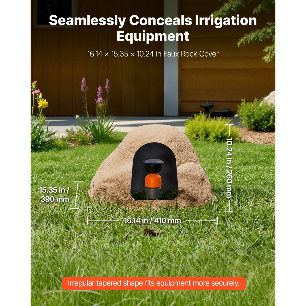 Ρεαλιστική εμφάνιση: Η τεχνητή ψεύτικη πέτρινη κάλυψή μας διαθέτει υφές που μοιάζουν με φυσική πέτρα στο χρώμα της άμμου. Το φυσικό χρώμα της πέτρας και η ρεαλιστική της εμφάνιση μπορούν να αντικαταστήσουν την πραγματική πέτρα στον κήπο ή το τοπίο, ταιριάζοντας τέλεια με τον κήπο, την πισίνα και το γκαζόν. Κάλυψη Εγκαταστάσεων Premium: Κατασκευασμένη από 100% ανακυκλώσιμο HDPE, η ψεύτικη πέτρινη κάλυψή μας είναι ανθεκτική στην πίεση και στις ρωγμές. Καλύπτει πηγάδια, σωλήνες και βαλβίδες καταιονισμού για να αποτρέψει την πρόκληση ζημιών. Είναι ανθεκτική στον ήλιο και τη βροχή, παρατείνοντας τη διάρκεια ζωής των εγκαταστάσεων. Μικρό μέγεθος για ευρεία χρήση: Με διαστάσεις περίπου 16,14 x 15,35 x 10,24 ίντσες, η βραχώδης κάλυψη τοπίου μας κρύβει κοινές εγκαταστάσεις όπως αντλίες, ηλεκτρικά κουτιά, καλύμματα φρεατίων και βαλβίδες καταιονισμού. Παρακαλούμε μετρήστε την εγκατάστασή σας πριν από την εγκατάσταση. Ανθεκτικός στον άνεμο και σταθερός σχεδιασμός: Τα τεχνητά καλύμματα από βράχους μας παρέχουν τρύπες στο κάτω μέρος και περιλαμβάνουν μεταλλικούς πασσάλους για εύκολη στερέωση στο γρασίδι ή το χώμα. Αυτός ο σχεδιασμός αποφεύγει την μετατόπιση που προκαλείται από τον άνεμο και η εγκατάστασή του δεν απαιτεί εργαλεία. Κατάλληλο για αυλές και βεράντες. Ελαφρύ για εύκολη μετακίνηση: Το κάλυμμα βράχου τοπίου μας ζυγίζει μόνο 2,43 λίβρες με μια στιβαρή και ελαφριά κοίλη δομή. Είναι εύκολο στη μεταφορά και την τοποθέτηση από ένα άτομο. Ο σχεδιασμός που μοιάζει με βράχο μπορεί να περιστραφεί για να ρυθμίσει τη γωνία, προσαρμόζοντας σε διαφορετικά σκηνικά.