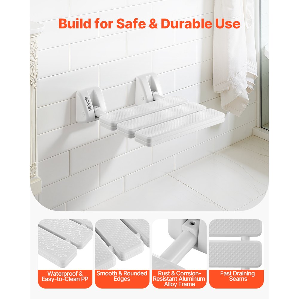 Πτυσσόμενο & Εξοικονομεί Χώρο: Κάντε την εμπειρία του ντους σας πιο άνετη και βολική με το επιτοίχιο κάθισμα ντους VEVOR. Διπλώνει άψογα στον τοίχο όταν δεν χρησιμοποιείται, διατηρώντας το μπάνιο τακτοποιημένο και μεγιστοποιώντας τον διαθέσιμο χώρο. Ισχυρή και αξιόπιστη στήριξη: Κατασκευασμένο με ανθεκτικό κάθισμα από πολυπροπυλένιο και στιβαρό πλαίσιο από κράμα αλουμινίου, αυτό το πτυσσόμενο παγκάκι ντους υποστηρίζει έως και 100 κιλά, παρέχοντας σταθερή και αξιόπιστη στήριξη σε ενήλικες, ηλικιωμένους και άτομα με περιορισμένη κινητικότητα. Πιο βελτιωμένος σχεδιασμός: Με αδιάβροχη και εύκολη στον καθαρισμό επιφάνεια, ραφές γρήγορης αποστράγγισης που βοηθούν στη μείωση της συσσώρευσης νερού και λείες άκρες χωρίς γρατζουνιές, αυτό το πτυσσόμενο κάθισμα ντους που τοποθετείται στον τοίχο ενισχύει την άνεση και την ασφάλεια για καθημερινή χρήση. Πολλαπλή χρήση: Περισσότερο από ένα απλό πτυσσόμενο κάθισμα ντους που εξοικονομεί χώρο, μπορεί επίσης να χρησιμοποιηθεί ως ράφι αποθήκευσης, παπουτσοθήκη εισόδου ή παγκάκι ξεκούρασης στο διάδρομο, συνδυάζοντας το μοντέρνο στυλ με την πρακτική λειτουργία. Εύκολη εγκατάσταση: Οι σαφείς οδηγίες και το παρεχόμενο υλικό στήριξης καθιστούν την εγκατάσταση απλή και γρήγορη. Τοποθετείται με ασφάλεια σε φέροντα συμπαγή τοίχο για αξιόπιστη απόδοση.