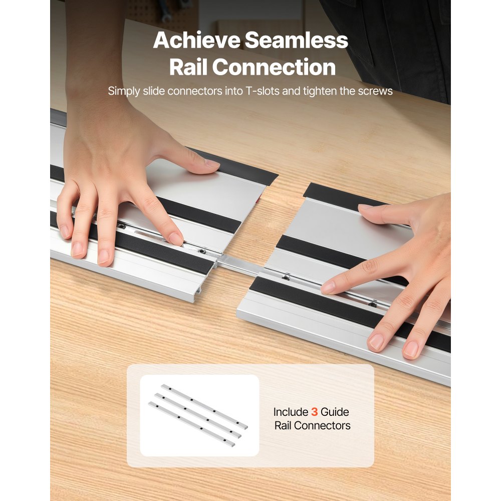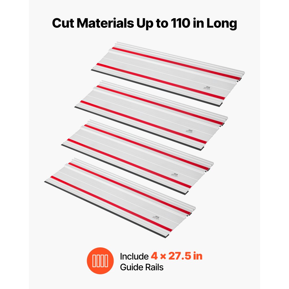 Ευρεία συμβατότητα: Η ράγα οδηγού για το πριόνι ερπύστριας μας είναι πλήρως συμβατή με τα πριόνια ερπύστριας VEVOR και λειτουργεί άψογα με μεγάλες μάρκες όπως Makita, Festool, WEN και Milwaukee (Δεν είναι συμβατή με DeWalt ή Bosch). Αναβαθμίστε την εγκατάστασή σας χωρίς επιπλέον κόστος. Κοπή υψηλής ακρίβειας: Περιλαμβάνει τέσσερις ράγες 27,5 ιντσών και τρεις συνδέσμους για ευθείες, ισορροπημένες και εξαιρετικά ακριβείς κοπές. Αυτό το σετ πριονιών ερπύστριας χειρίζεται έπιπλα κατά παραγγελία και σύνθετες εργασίες ανακαίνισης με σιγουριά. Ανθεκτική στη διάβρωση κατασκευή: Κατασκευασμένη από ποιοτικό αλουμίνιο, αυτή η ράγα οδηγού πριονιού προσφέρει εξαιρετική αντοχή και είναι ανθεκτική στη σκουριά και τη διάβρωση για μακροχρόνια χρήση σε οποιοδήποτε περιβάλλον συνεργείου ή εργοταξίου. Γρήγορη και απρόσκοπτη σύνδεση: Χρησιμοποιήστε τον παρεχόμενο σύνδεσμο για να συνδέσετε άμεσα τη ράγα οδηγού του πριονιού ράγας, επεκτείνοντας την ικανότητα κοπής του πριονιού ράγας για να χειρίζεστε μεγαλύτερα τεμάχια. Δεν χρειάζεται να κάνετε συνεχείς επανευθυγραμμίσεις ή να μετράτε και να σημαδεύετε. Η ασφάλεια προέχει: Αυτή η ράγα οδηγού ράγας διαθέτει ταινία ολίσθησης χαμηλής τριβής, ταινία προστασίας από γρατζουνιές και αντιολισθητική ταινία λαβής για σταθερή και καθαρή λειτουργία. Απολαύστε ομαλή κίνηση, κοπές χωρίς γρατζουνιές και σταθερή ακρίβεια σε κάθε πέρασμα.