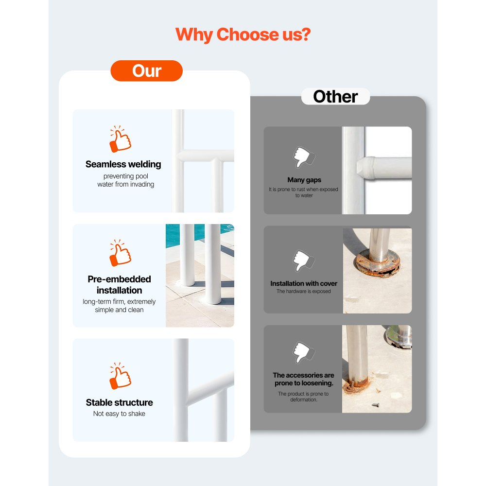 Βαρύ φορτίο 100 κιλών: Το κιγκλίδωμα πισίνας μας εξασφαλίζει ασφαλή είσοδο και έξοδο από την πισίνα σας. Είτε τραβώντας προς τα πάνω, είτε υποστηρίζοντας από το πλάι, είτε πιέζοντας προς τα κάτω κάθετα, το κιγκλίδωμα πισίνας κατανέμει το βάρος ομοιόμορφα, αντιστεκόμενο στο σπάσιμο ή την παραμόρφωση. Κατάλληλο για πισίνες με αλμυρό νερό και χλώριο: Το ρυθμιζόμενο κιγκλίδωμα πισίνας έχει επιφάνεια με επικάλυψη πολυμερούς που είναι ανθεκτική στη διάβρωση σε πισίνες με αλάτι ή χλώριο. Ο πυρήνας από ανοξείδωτο ατσάλι παρέχει ισχυρή στήριξη και είναι ανθεκτικός στην παραμόρφωση. Ξεπλύνετε με γλυκό νερό μετά τη χρήση. Μακροχρόνια αντοχή: Η απρόσκοπτη συγκόλληση ελαχιστοποιεί τα κενά που θα μπορούσαν να επιτρέψουν τη διείσδυση νερού, αποφεύγοντας τη σκουριά και τη χαλάρωση των αξεσουάρ. Η εσοχή κρύβει τα εξαρτήματα, ενισχύοντας τόσο τη μακροζωία όσο και την αισθητική. Επιλογές διπλής εγκατάστασης: Υποστηρίζει εγκατάσταση σε εσοχή ή βάση. Επιλέξτε την καλύτερη μέθοδο για την εγκατάσταση της πισίνας σας. Σημείωση: Τα αξεσουάρ βάσης δεν περιλαμβάνονται. Παρέχεται μόνο η ράγα πισίνας. Ευέλικτη τοποθέτηση: Μπορεί να εγκατασταθεί σε επιφάνειες από σκυρόδεμα, ξύλο ή τούβλα. Ιδανικό για κάγκελα πισίνας σε πισίνες, πισίνες με κεκλιμένη είσοδο, κέντρα σπα και υδάτινα πάρκα. Ιδανικό για την υποβοήθηση ηλικιωμένων και ατόμων με αναπηρία κατά την είσοδο και έξοδο από την πισίνα.