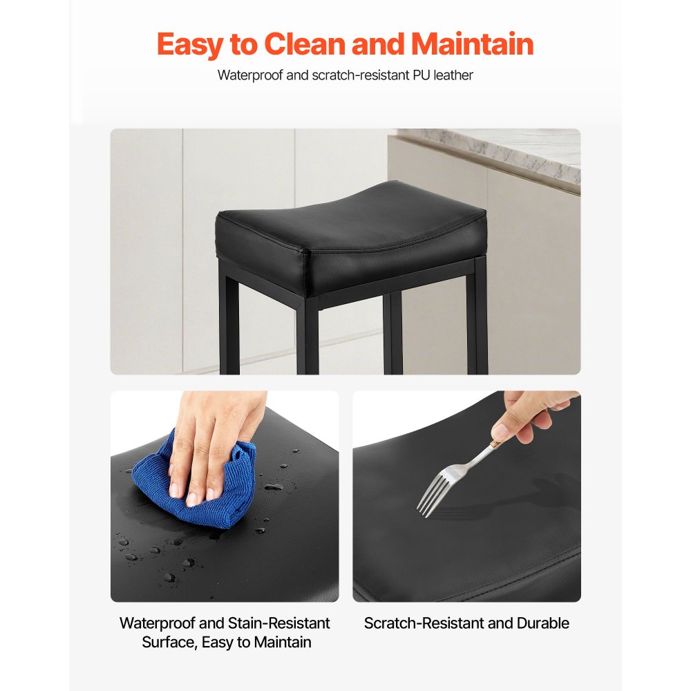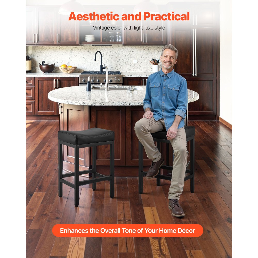 Ισχυρή και σταθερή στήριξη βάρους: Τα σκαμπό μπαρ διαθέτουν χοντρούς σωλήνες από σίδηρο με σταθερή δομή, προσφέροντας μέγιστη ικανότητα φόρτωσης βάρους έως και 136 κιλά. Τα πόδια του σκαμπό είναι επικαλυμμένα με φινίρισμα ψεκασμού για αντοχή στη σκουριά και τις γρατσουνιές. Καμπυλωτή επένδυση μαξιλαριού: Το μαξιλάρι καθίσματος αγκαλιάζει τους γοφούς και τους μηρούς, προσφέροντας φυσική στήριξη για παρατεταμένο κάθισμα. Η ενισχυμένη επένδυση εξασφαλίζει σταθερότητα, ελαχιστοποιεί την ολίσθηση και την πίεση. Το σκαμπό μπαρ προσφέρει μια άνετη εμπειρία καθίσματος. Εύκολη συναρμολόγηση και συντήρηση: Τα σκαμπό ύψους πάγκου είναι κατασκευασμένα από αδιάβροχο δέρμα PU. Ένα απλό σκούπισμα με ένα στεγνό πανί θα τα διατηρήσει πεντακάθαρα. Συνοδεύεται από εργαλεία εγκατάστασης, η συναρμολόγηση είναι απλή και φιλική προς τους αρχάριους, επιτρέποντας γρήγορη εγκατάσταση. Πρακτικό σετ: Το σετ περιλαμβάνει 2 σκαμπό μπαρ, διαστάσεων 17,72x13,39x25,39 ίντσες το καθένα, με ύψος καθίσματος 24,6 ίντσες. Αυτή η καρέκλα μπαρ είναι ιδανική για νοικοκυριά δύο ατόμων ή ανοιχτές κουζίνες, μεταβαίνοντας εύκολα μεταξύ φαγητού, κοινωνικοποίησης και δραστηριοτήτων γραφείου. Ελαφριά πολυτέλεια και ευελιξία: Το μαύρο δέρμα PU σε συνδυασμό με την κομψή καμπυλωτή πλάτη, είναι κατάλληλο τόσο για οικιακούς όσο και για επαγγελματικούς χώρους. Το κανονικό ύψος καθίσματος ταιριάζει σε διάφορους κανονικούς πάγκους μπαρ και νησίδες κουζίνας.