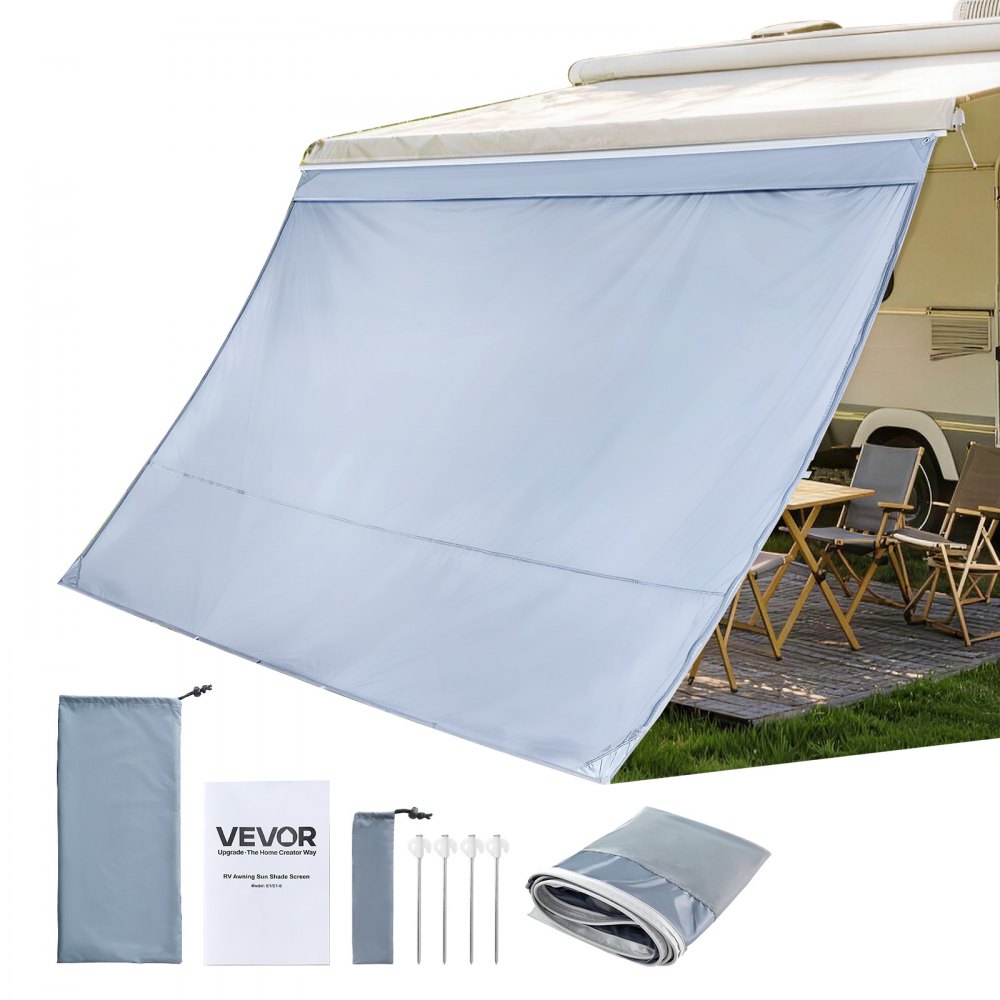 Λεπτομέρειες διαστάσεων: Μέγεθος κουρτίνας σκίασης: 2 x 3,3 μ., συμβατό με τέντες 3,5 μ. Μετρήστε προσεκτικά το μέγεθος της τέντας σας πριν από την αγορά για να βεβαιωθείτε για τη συμβατότητα. Αποτελεσματική σκίαση: Αφήστε την τέντα VEVOR RV με κάλυμμα με φερμουάρ UV50+ να μπλοκάρει αποτελεσματικά το έντονο ηλιακό φως και να μειώνει την αντανάκλαση, διατηρώντας την σκιασμένη περιοχή σας πιο δροσερή και άνετη για χαλάρωση και κάμπινγκ σε εξωτερικούς χώρους. Αερισμός & Προστασία Ιδιωτικού Χώρου: Όταν το κάλυμμα UV50+ ανοίγει και τυλίγεται, το εσωτερικό αναπνεύσιμο πλέγμα επιτρέπει τη ροή φρέσκου αέρα για καλύτερο αερισμό. Όταν κλείνει με φερμουάρ, το κάλυμμα εμποδίζει αποτελεσματικά το ηλιακό φως, τη βροχή και τα έντομα, ενώ παράλληλα ενισχύει την ιδιωτικότητα. Ανθεκτικό και αξιόπιστο: Το εσωτερικό ύφασμα είναι κατασκευασμένο από πλέγμα πολυεστέρα υψηλής πυκνότητας και το εξωτερικό κάλυμμα διαθέτει αδιάβροχη επίστρωση PU. Σε συνδυασμό με τις διπλές ραμμένες ραφές και τις ενισχυμένες γωνίες, βοηθά στη μείωση του σχισίματος και της στρέβλωσης για βελτιωμένη ανθεκτικότητα. Γρήγορη Εγκατάσταση & Ασφαλής Εφαρμογή: Διαθέτει τρεις διαμέτρους καλωδίου εισαγωγής (4,3 mm/6,2 mm/7 mm) για να ταιριάζει σε διαφορετικές ράγες τέντας RV, εξασφαλίζοντας άνετη εφαρμογή, ευκολότερη εγκατάσταση και πιο σταθερή τοποθέτηση. Περιλαμβάνονται τσάντες αποθήκευσης για συμπαγή αποθήκευση και μεταφορά που εξοικονομούν χώρο.