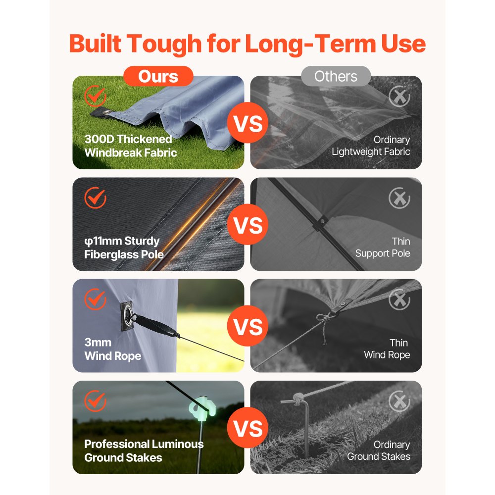Ευρύχωρο δωμάτιο για 10 άτομα: Αυτή η σκηνή με αναδιπλούμενο κιόσκι 12x12 ποδιών χωράει άνετα 6 καθίσματα με έπιπλα, και μπορεί να φιλοξενήσει έως και 8-10 άτομα για δραστηριότητες. Το ύψος του κουφώματος 7,2 ποδιών επιτρέπει την εύκολη μετακίνηση στο εσωτερικό. Τα πάνελ στις πόρτες με φερμουάρ και δέσιμο εξασφαλίζουν εύκολη είσοδο και έξοδο. Ιδανική για οικογενειακές συγκεντρώσεις, πάρτι και κάμπινγκ. Εξωτερικός χώρος διαβίωσης 3 σε 1: Αυτή η σκηνή κάμπινγκ-γκαζόμπο διαθέτει μετατρέψιμα πάνελ πόρτας που λειτουργούν και ως αναβαθμισμένα στέγαστρα ηλιοπροστασίας. Ανθεκτική τέντα Oxford 300D με προστασία UV50+ προστατεύει από το ηλιακό φως, ενώ η επίστρωση PU κρατάει τη βροχή έξω. Η διχτυωτή οροφή "έναστρου ουρανού" προσφέρει ανοιχτή θέα για διασκέδαση παρατήρησης των άστρων. Ανθεκτική στον άνεμο δομή: Οι στύλοι από υαλοβάμβακα υψηλής αντοχής και τα έξι ενισχυμένα πάνελ ανέμου που τυλίγονται ενισχύουν τη σταθερότητα και την ιδιωτικότητα. Τα πλευρικά κλεισίματα τύπου βρόχου εμποδίζουν τα πάνελ να κουνηθούν στον άνεμο. Το αναδιπλούμενο στέγαστρο περιλαμβάνει πολλαπλούς πασσάλους εδάφους και σχοινιά στήριξης για ασφαλή εξωτερική τοποθέτηση. (Συμβουλή: Αποσυναρμολογήστε κατά τη διάρκεια έντονης βροχής ή καταιγίδων για ασφάλεια.) Γρήγορη εγκατάσταση και εύκολη αποθήκευση: Η σκηνή με σήτα διαθέτει σχεδιασμό αναδιπλούμενου κόμβου που δεν απαιτεί εργαλεία για γρήγορη συναρμολόγηση. Διπλώνει συμπαγώς σε μια τσάντα μεταφοράς 4,4 ft / 1,34 m, εύκολη στην αποθήκευση σε πορτμπαγκάζ SUV ή RV. Αερισμός 360°: Τα πλαϊνά τοιχώματα και η οροφή από πλέγμα επιτρέπουν τη ροή του αέρα, κρατώντας τα ζωύφια έξω. Δύο αναδιπλούμενα πάνελ ανέμου με παράθυρα εξαερισμού διατηρούν την κυκλοφορία του αέρα ακόμα και όταν είναι πλήρως κλειστά. Η σκηνή με το θόλο προσφέρει άνετη ατμόσφαιρα για τους ενήλικες.