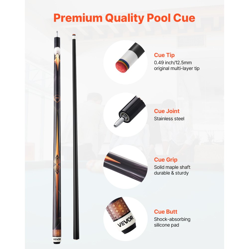 Στερεό και Ακριβές: Το μπαστούνι μπιλιάρδου μας είναι κατασκευασμένο από συμπαγές καναδικό σφένδαμο για βέλτιστη μετάδοση ισχύος και ακριβή ανάδραση βολής. Το μαξιλαράκι σιλικόνης στη βάση αποτρέπει ζημιές κατά την τοποθέτηση του μπαστούνιου μπιλιάρδου σε όρθια θέση στο πάτωμα, εξασφαλίζοντας διαρκή ανθεκτικότητα και απόδοση. Ακριβής Κατασκευή: Εξοπλισμένο με δερμάτινη μύτη 7 στρώσεων πάχους 0,49 minch/12,5 mm, αυτό το μπαστούνι μπιλιάρδου για ενήλικες εξασφαλίζει απότομο έλεγχο με σταθερό κέντρο και απαλές άκρες. Είναι ειδικά σχεδιασμένο για δυνατά breaks και μακρινά σουτ σε παιχνίδια 9 μπάλων και καραμπίνας, καθιστώντας το ιδανική επιλογή για αρχάριους. Απρόσκοπτη σύνδεση: Αυτό το σετ μπαστουνιών πισίνας διαθέτει σύνδεσμο από ανοξείδωτο ατσάλι με βίδα ταχείας κοπής 3/8 που εξασφαλίζει απρόσκοπτη και ασφαλή σύνδεση. Η ματ επίστρωση παρέχει αντιολισθητική λαβή, ενώ ο μαύρος δακτύλιος σύνδεσης ABS και ο διακοσμητικός δακτύλιος προσθέτουν μια πινελιά κομψότητας και ενισχύουν την ανθεκτικότητα. Συμπαγές και ελαφρύ: Το μπαστούνι μπιλιάρδου μας είναι η ιδανική επιλογή για αρχάριους, διαθέτοντας σχεδιασμό δύο τεμαχίων που είναι εύκολο στην αποθήκευση και τη μεταφορά. Με μήκος 58 ίντσες/1473,2 χιλιοστά και βάρος 19 oz/538 γραμμάρια, παρέχει την ιδανική ισορροπία για τους νέους παίκτες ώστε να βελτιώσουν τις δεξιότητές τους. Πλήρες σετ στέκας: Αυτό το σετ περιλαμβάνει 1 υψηλής ποιότητας μπαστούνι μπιλιάρδου από σφένδαμο, 1 θήκη μεταφοράς, 1 διαμορφωτή μύτης στέκας 2 σε 1 και θήκη κιμωλίας, 1 πετσέτα και 1 κομμάτι κιμωλίας. Ένα ιδανικό δώρο για αρχάριους παίκτες, που τους επιτρέπει να ξεκινήσουν αμέσως την εξάσκηση.