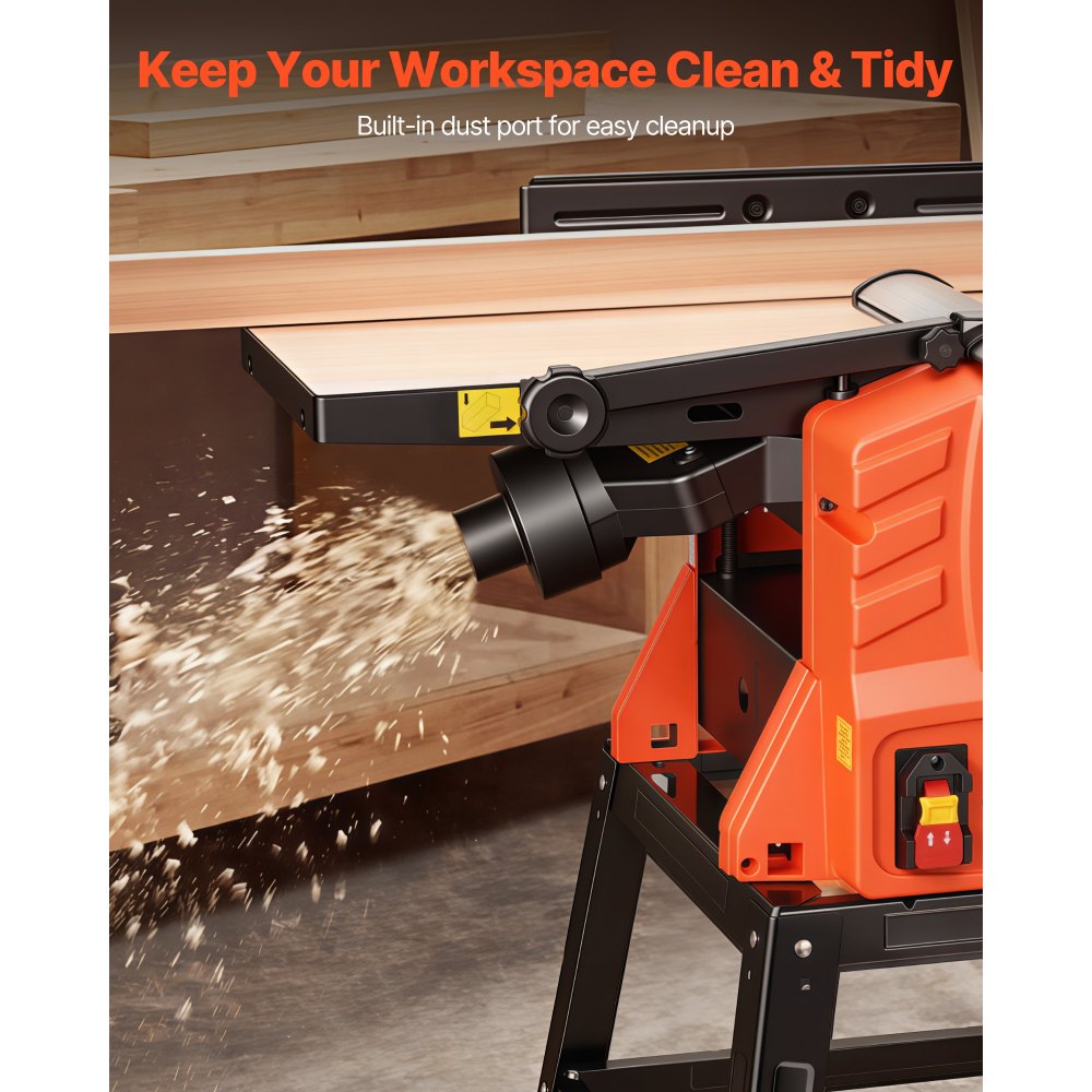 Ευελιξία 2 σε 1: Εξοπλισμένο με αναβαθμισμένη ευθεία κεφαλή κοπής 2 λεπίδων, αυτός ο συνδυασμός επιτραπέζιας πλάνης και εναρμόνισης χειρίζεται τόσο το επιφανειακό πλάνισμα όσο και την ένωση, προσφέροντας ομαλές, ομοιόμορφες κοπές - ιδανικές για επαγγελματικά έργα ξυλουργικής. Ισχυρός κινητήρας 2,4 HP: Με ταχύτητα έως και 8000 σ.α.λ., αυτή η επιτραπέζια πλάνη χειρίζεται εύκολα όλους τους τύπους ξύλου. Είτε εργάζεστε με μαλακό είτε με σκληρό ξύλο, προσφέρει ομαλές, σταθερές και αποτελεσματικές κοπές. Ευρύχωρο τραπέζι εργασίας: Με τραπέζι εργασίας 10 x 36,4 ίντσες (254 x 925 χιλ.), το ξυλουργικό μας μηχάνημα παρέχει άφθονο χώρο για κοπή μεγάλων ξύλων χωρίς περιορισμούς. Υποστηριζόμενο από μια επαγγελματική βάση, εξασφαλίζει σταθερή και ασφαλή λειτουργία για μεγάλα έργα ξυλείας. Ακριβής Κοπή: Είστε έτοιμοι να δημιουργήσετε μοναδικά, προσαρμοσμένα έργα ξύλου; Το επιτραπέζιο ξυλουργικό μηχάνημα ρυθμίζει εύκολα τη γωνία πλανίσματος και το βάθος από 0 έως 1/8 ίντσας. Επιτύχετε ακριβείς κοπές για διάφορους τύπους ξύλου, ελαχιστοποιώντας παράλληλα τη σπατάλη υλικού. Εύκολος καθαρισμός σκόνης: Το ξυλουργικό μας μηχάνημα περιλαμβάνει μια θύρα συλλογής σκόνης που μπορεί να συνδεθεί με διάφορες ηλεκτρικές σκούπες (δεν περιλαμβάνονται) χωρίς να συσσωρεύεται πριονίδι. Αυτό διατηρεί τον χώρο εργασίας σας καθαρό και αποτελεσματικό, κάνοντας τον καθαρισμό γρήγορο και εύκολο.