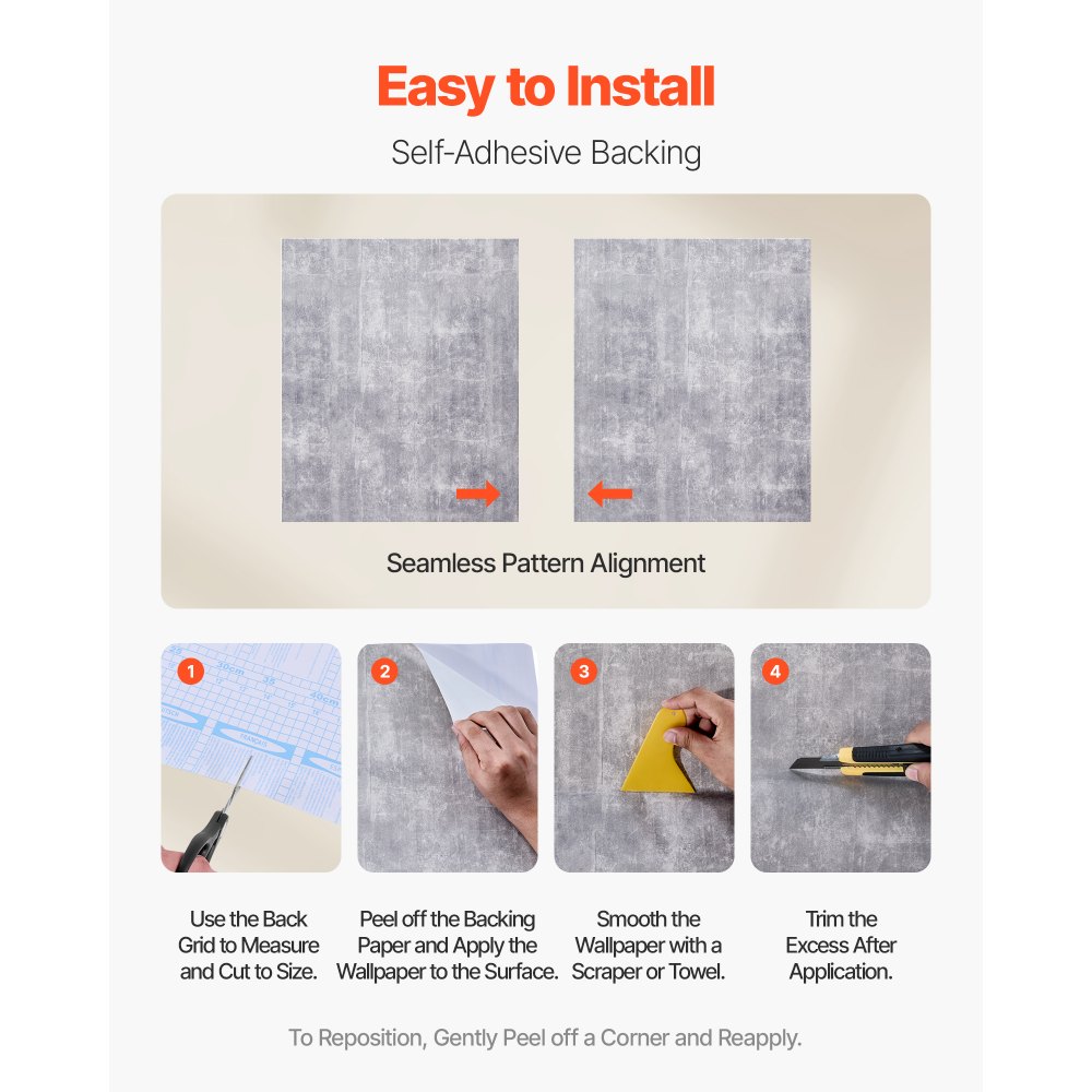 Κομψός Σχεδιασμός Μοτίβων: Αυτή η ταπετσαρία βινυλίου διαθέτει κομψά μοτίβα που ταιριάζουν σε σκανδιναβικά, μοντέρνα, ρετρό και μινιμαλιστικά στυλ. Χρησιμοποιήστε την ως πλήρη ταπετσαρία ή ως διακοσμητική ταπετσαρία για να αναβαθμίσετε εύκολα οποιοδήποτε δωμάτιο με μια εκλεπτυσμένη διακοσμητική πινελιά. Εξαιρετικά φαρδύ μεγάλο μέγεθος: Με μέγεθος 49,21 πόδια ανά ρολό, αυτή η ταπετσαρία καλύπτει μεγαλύτερη περιοχή με λιγότερες ραφές. Εξοικονομεί χρόνο και εργασία, καθιστώντας την εγκατάσταση ταχύτερη και πιο αποτελεσματική για μεγάλα έργα επένδυσης τοίχων. Εύκολη εγκατάσταση με ξεκολλημένο και κολλημένο χαρτί: Αυτό το αυτοκόλλητο χαρτί επαφής δεν απαιτεί επιπλέον κόλλα ή εργαλεία. Απλώς ξεκολλήστε και κολλήστε το - ιδανικό για αρχάριους DIY για να ανανεώσουν τον χώρο τους γρήγορα και αβίαστα. Μακράς Διάρκειας Υλικό: Κατασκευασμένη από PVC υψηλής πυκνότητας, αυτή η ταπετσαρία βινυλίου προσφέρει ισχυρή πρόσφυση ενώ παράλληλα αντιστέκεται στις φυσαλίδες και το ξεφλούδισμα. Είναι μακράς διαρκείας, εύκολη στο καθάρισμα και ιδανική για χώρους με μεγάλη κυκλοφορία. Ακριβής Κοπή με Απλότητα: Οι γραμμές πλέγματος στο πίσω μέρος της ταπετσαρίας βοηθούν στην εξασφάλιση ακριβούς μέτρησης και κοπής. Ιδανικό για κομψές, προσαρμοσμένες εφαρμογές DIY με ελάχιστα απόβλητα.