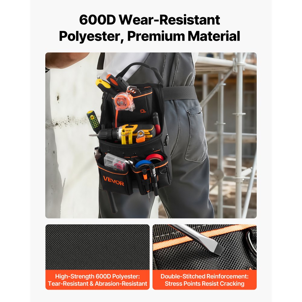Αποθήκευση με 14 τσέπες: Η ζώνη εργαλείων μας διαθέτει 14 τσέπες για να οργανώνετε σφυριά, κατσαβίδια, πένσες, μετροταινίες και καρφιά. Βρείτε γρήγορα εργαλεία, εξοικονομώντας χρόνο και ενισχύοντας την αποδοτικότητα—ιδανικό για ξυλουργικές εργασίες, ηλεκτρολογικές εργασίες και εργοτάξια. Ρυθμιζόμενη μέση: Αυτή η ζώνη εργαλείων ξυλουργού υποστηρίζει ρύθμιση μέσης 32–50 ιντσών με ανθεκτική αγκράφα και συρόμενο ρυθμιστή για άνετη εφαρμογή. Προσαρμόζεται εύκολα σε μπουφάν ή ρούχα εργασίας, διατηρώντας τη ζώνη σταθερή κατά το σκύψιμο, την αναρρίχηση ή την κίνηση. Εργονομική άνετη ζώνη μέσης: Η διευρυμένη, παχύτερη ζώνη εργαλείων κατανέμει ομοιόμορφα το βάρος και μειώνει την καταπόνηση. Παραμένει ασφαλής και άνετη κατά τη διάρκεια μεγάλης, έντονης εργασίας, αποφεύγοντας τη συστολή και την κόπωση, βοηθώντας τους εργαζομένους να συγκεντρωθούν και ενισχύοντας την αποδοτικότητα. Ανθεκτικό στην τριβή και το σχίσιμο: Με ενισχυμένο πολυεστέρα 600D με διπλές ραφές και δεμένες άκρες, η ζώνη εργαλείων Framers μας αντιστέκεται στη φθορά, το σχίσιμο, το κρέμασμα και το τσαλάκωμα ακόμα και κάτω από βαριά εργαλεία, με πλήρες φορτίο ή σε κατασκευές. Κατασκευασμένο για επαγγελματίες και ερασιτέχνες. Ευέλικτη χρήση: Ιδανική για ξυλουργούς, ηλεκτρολόγους, εργάτες οικοδομών και ερασιτέχνες, αυτή η ζώνη εργαλείων κατασκευών διατηρεί τα εργαλεία σας οργανωμένα και χωρίς χέρια. Κατάλληλη για βαριές εργασίες ή επισκευές στο σπίτι, προσφέρει αποτελεσματική, ολοκληρωμένη λειτουργικότητα.