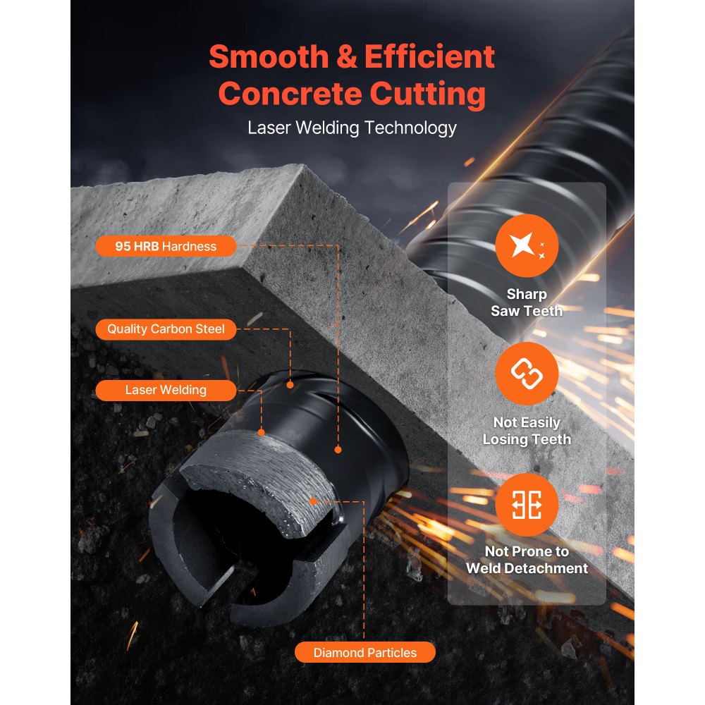 Υψηλή συμβατότητα: Αυτό το σετ περιλαμβάνει ένα τρυπάνι με πυρήνα διαμέτρου 1 ίντσας, τρεις προσαρμογείς και ένα τρυπάνι-οδηγό, καθιστώντας το συμβατό με τα περισσότερα τυπικά τρυπάνια και κρουστικά δράπανα. Συνδυάστε ευελιξία και ευκολία για διάφορες εργασίες. Ακριβής τοποθέτηση: Το διαμαντένιο τρυπάνι ξηρής διάτρησης διαθέτει πιλοτικό τρυπάνι, δεν χρειάζεται προτρύπημα. Η αιχμηρή άκρη διεισδύει γρήγορα στην επιφάνεια, επιτρέποντας ταχύτερη και ακριβέστερη τοποθέτηση, εξασφαλίζοντας ομαλή λειτουργία χωρίς αλλαγή τρόπου λειτουργίας. Ανθεκτικό και στιβαρό: Κατασκευασμένο από ποιοτικό ανθρακούχο χάλυβα με συγκόλληση υψηλής ακρίβειας, αυτό το τρυπάνι με πυρήνα σκυροδέματος διαθέτει σκληρότητα 95HRB. Αντέχει στη συσσώρευση θερμότητας κατά τη διάρκεια τρυπήματος υψηλής ταχύτητας ή εργασιών ξηρής λειτουργίας, αποφεύγοντας την αποκόλληση της λεπίδας και ενισχύοντας τη μακροζωία. Υψηλής Απόδοσης Τρύπημα: Τα τρυπάνια μας για σκυρόδεμα διαθέτουν δόντια με ακριβή τροχισμό για ομαλές άκρες χωρίς γρέζια και ταχύτερες, ακριβείς κοπές. Το κέντρο των δοντιών ευθυγραμμίζεται με τον άξονα εγκατάστασης, αντιστέκεται στην ταλάντωση ή τη μετατόπιση κατά την περιστροφή υψηλής ταχύτητας. Ευρεία εφαρμογή: Ιδανικό για διάτρηση σε οπλισμένο σκυρόδεμα, κόκκινο τούβλο, σκυρόδεμα και αφρώδες τούβλο. Αυτό το τρυπάνι πυρήνα χρησιμοποιείται συνήθως σε εγκαταστάσεις κλιματισμού, υδραυλικές εγκαταστάσεις, κιγκλιδώματα σκαλοπατιών, αυτοκινητόδρομους, αεροδρόμια και διάφορες κατασκευές.