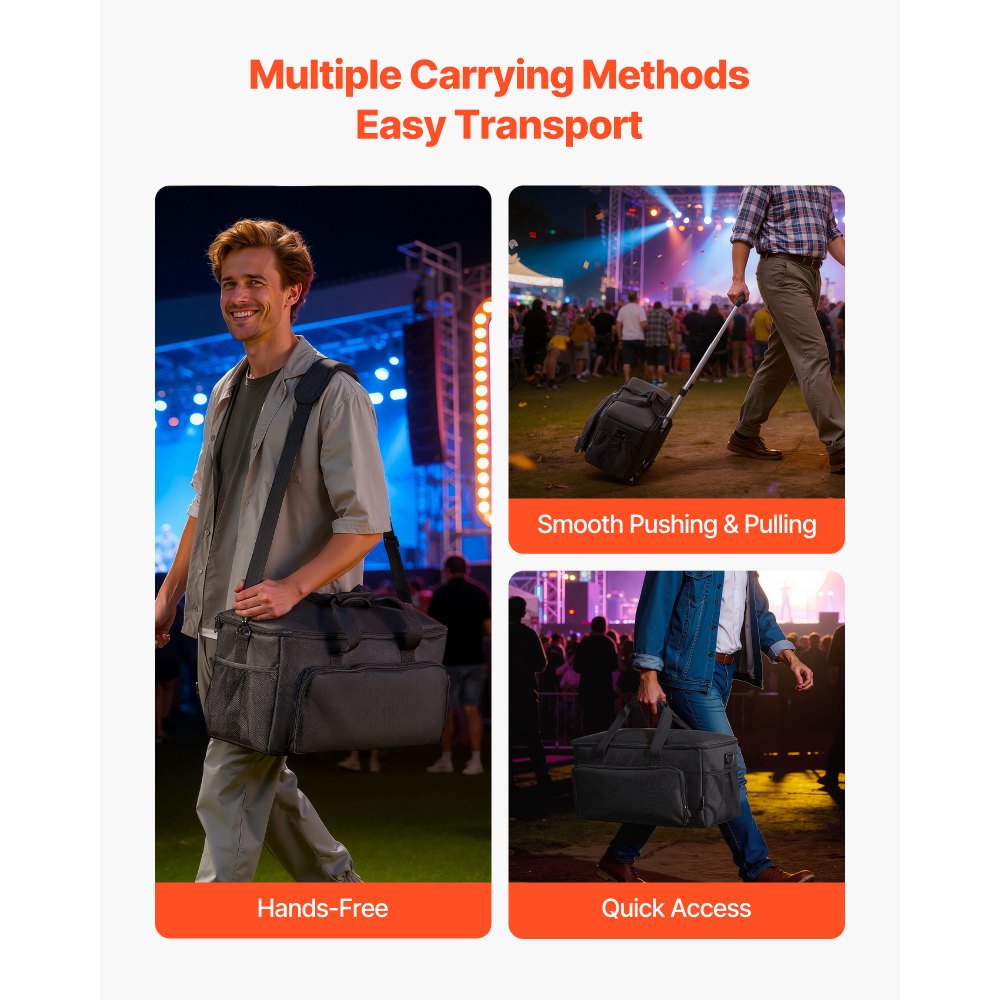 Ευρύχωρος χώρος: Αυτή η κυλιόμενη τσάντα καλωδίου DJ διαθέτει εσωτερικό μέγεθος 20 x 9,4 x 10,4 ίντσες με έξι αποσπώμενα διαχωριστικά. Παρέχει προστασία για τον εξοπλισμό DJ σας (μίξερ, μικρόφωνα, ακουστικά κ.λπ.), καθιστώντας το ταξίδι σας πιο οργανωμένο χωρίς άγχος. Πολλαπλή προστασία: Το εξωτερικό είναι κατασκευασμένο από υλικό ανθεκτικό στις γρατσουνιές και τη φθορά για ανθεκτικότητα. Εξοπλισμένη με παχιά επένδυση EPE για αποτελεσματική απορρόφηση κραδασμών, η θήκη DJ gig bag μας είναι ένας αξιόπιστος σύντροφος για DJs, μουσικούς και ερμηνευτές εν κινήσει. Σχεδιασμός με πολλαπλά διαμερίσματα: Τόσο το εσωτερικό όσο και το εξωτερικό διαθέτουν πολλαπλά διαμερίσματα. Αυτή η κυλιόμενη τσάντα αρχειοθέτησης καλωδίων DJ όχι μόνο οργανώνει τα καλώδια DJ, αλλά αποθηκεύει και διάφορα μικρά αντικείμενα, όπως power bank, κινητά τηλέφωνα, πορτοφόλια, κάρτες, κέρματα και κλειδιά. Ευέλικτες επιλογές μεταφοράς: Η τσάντα ταξιδιού για DJ παρέχει 3 τρόπους μεταφοράς για DJ, μουσικούς και ταξιδιώτες. Οι κάτω ρόδες κάνουν το κύλισμα πανεύκολο, η λαβή είναι ιδανική για γρήγορο πιάσιμο και μεταφορά και ο ιμάντας ώμου επιτρέπει τη μεταφορά χωρίς χέρια. Μακροχρόνια αξιοπιστία: Η τσάντα αρχειοθέτησης καλωδίων DJ με ρόδες έχει σχεδιαστεί με ενισχυμένες ραφές για βελτιωμένη αντοχή στις ραφές για μακροχρόνια χρήση. Το ανθεκτικό φερμουάρ διατηρεί τον εξοπλισμό σας ασφαλή και αντιστέκεται στο σκίσιμο ή την ολίσθηση, ακόμα και κάτω από έντονο τράβηγμα.