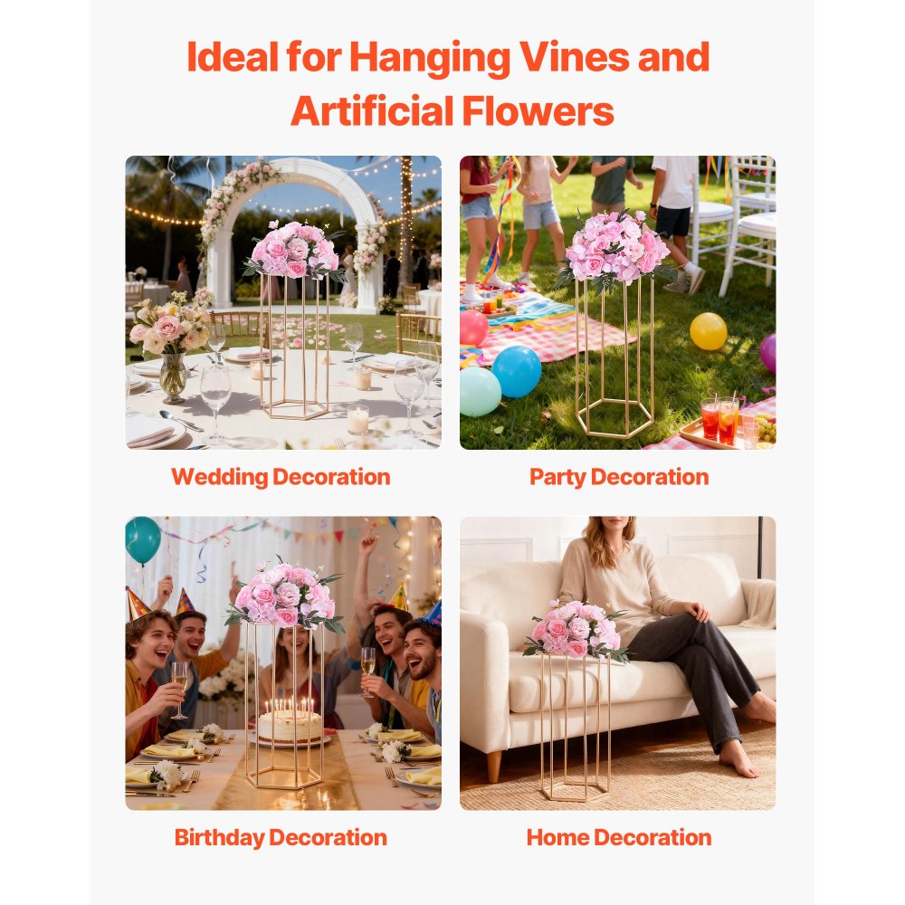 Κομψός Σχεδιασμός: Με κλασικό εξαγωνικό σχεδιασμό κύβου, η γεωμετρική κεντρική βάση μας προσφέρει μια κομψή εμφάνιση, ενώ παράλληλα κατανέμει ομοιόμορφα το βάρος για σταθερότητα. Με δυνατότητα ανύψωσης βάρους 15 κιλών, εξασφαλίζει ασφαλή τοποθέτηση της διακόσμησής σας, προσθέτοντας μια μοναδική πινελιά σε γάμους, πάρτι ή εορτασμούς. Ανθεκτική βάση λουλουδιών: Κατασκευασμένη από παχύ χάλυβα SPCC ψυχρής έλασης και διαφανή ακρυλικά ράφια, αυτή η βάση λουλουδιών προσφέρει αντοχή και διαρκή ομορφιά. Η συμπαγής βάση παρέχει σταθερότητα, εξασφαλίζοντας αξιόπιστη στήριξη για λουλούδια, διακοσμητικά ή άλλα αντικείμενα, διατηρώντας την κομψή της με την πάροδο του χρόνου. Φινίρισμα Χρυσού Premium: Χρησιμοποιώντας μια διαδικασία ηλεκτρολυτικής επιμετάλλωσης γαλλικού χρυσού υψηλής ποιότητας, το γεωμετρικό κεντρικό βάζο μας έχει μια λεία, κομψή επιφάνεια με λαμπερή χρυσή λάμψη. Η εξαιρετική αντοχή στη διάβρωση διασφαλίζει ότι διατηρεί το ζωντανό του χρώμα, προσθέτοντας μια πολυτελή και ρομαντική πινελιά στη διακόσμηση του γάμου σας. Πλήρως εξοπλισμένη βάση: Με όλα τα εξαρτήματα που περιλαμβάνονται, αυτή η ψηλή βάση λουλουδιών VEVOR δεν απαιτεί πρόσθετες αγορές. Ο σχεδιασμός της με κρυφές βίδες διπλής κεφαλής απλοποιεί τη συναρμολόγηση και βελτιώνει τη σταθερότητα, καθιστώντας την εγκατάσταση γρήγορη και εύκολη, επιτρέποντάς σας να εξοικονομήσετε χρόνο. Πολλαπλών χρήσεων ανθοπωλείο: Σχεδιασμένο για φρέσκα και τεχνητά λουλούδια, αυτό το ράφι ανθοπωλείου είναι επίσης κατάλληλο για διάφορα διακοσμητικά είδη. Από γάμους και πάρτι μέχρι γενέθλια και διακόσμηση σπιτιού, ταιριάζει σε κάθε εκδήλωση ή χώρο, προσδίδοντας κομψή ομορφιά στο περιβάλλον σας.