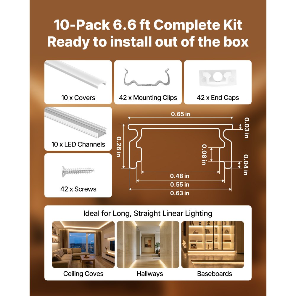 Φωτεινός, Ομοιόμορφος Φωτισμός: Η ανθεκτική στην οξείδωση επιφάνεια διατηρεί την φωτεινότητα ορατή, ενώ παράλληλα απαλύνει το φως για ομαλό, φιλικό προς τα μάτια φωτισμό. Το κανάλι αλουμινίου LED με γαλακτώδες κάλυμμα φαίνεται κομψό και κομψό, βελτιώνοντας τη συνολική ατμόσφαιρα του σπιτιού σας. Ενισχυμένη προστασία: Αυτό το κανάλι διάχυσης ταινιών LED διαθέτει ανοδιωμένο αλουμίνιο για εξαιρετική απαγωγή θερμότητας και παράταση της διάρκειας ζωής των LED. Το κάλυμμα προστατεύει τις ταινίες από τη σκόνη, τις τρίχες και την υγρασία, αποτρέποντας το κιτρίνισμα, το χαλάρωμα και το ξεφλούδισμα με την πάροδο του χρόνου. Εύκολη εγκατάσταση: Στερεώστε πρώτα τα κλιπ στερέωσης, τοποθετήστε το κανάλι της ταινίας LED, κολλήστε την ταινία LED, πιέστε το κάλυμμα και προσθέστε τα καλύμματα των άκρων. Με τα πλήρη αξεσουάρ που περιλαμβάνονται, ακόμη και οι αρχάριοι μπορούν να ολοκληρώσουν την εγκατάσταση γρήγορα και με σιγουριά. Ευρεία εφαρμογή: Αυτή η ταινία LED με φως είναι ιδανική για βιβλιοθήκες, κάτω από ντουλάπια, ντουλάπες, προθήκες και γωνίες σαλονιού ή υπνοδωματίου. Δημιουργεί επίσης εορταστικό φωτισμό για γιορτές όπως το Πάσχα και τα Χριστούγεννα με μια πινελιά κομψότητας. Πολλαπλές διαθέσιμες επιλογές: Λύση γραμμικού φωτισμού μίας χρήσης με διάφορα στυλ καναλιών LED: Σχήμα U για κρυφό φωτισμό, σχήμα U για μεγάλες διαστάσεις για απαλή λάμψη χωρίς αντανακλάσεις, σχήμα V για εστιασμένες πινελιές και εσοχή διπλής όψης για καθαρά, άψογα σχέδια.