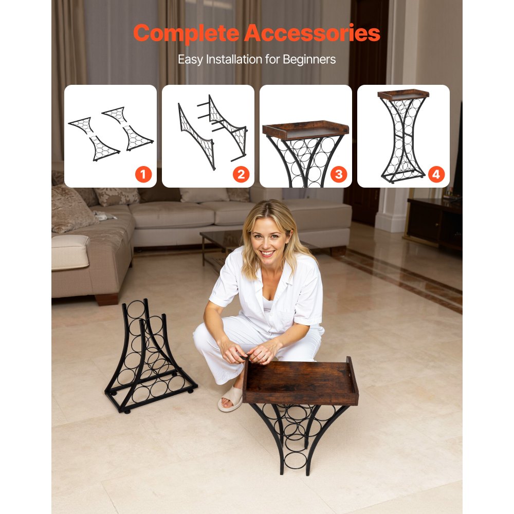 Συμπαγής Ράφι Κρασιών: Αυτή η ανεξάρτητη, ελεύθερη βάση ραφιών κρασιών μπορεί να χωρέσει έως και 15 μπουκάλια, χωρίς σταθερά στρώματα για ευέλικτη διάταξη. 16,9'' Μ x 11,4'' Π x 35,2'' Υ, είναι ιδανική για την οργάνωση και την έκθεση της συλλογής κρασιών σας. Ανθεκτική δομή: Κατασκευασμένη με σιδερένιο σωλήνα πάχους 0,6 x 0,6 ίντσες/15 x 15 χιλ., αυτή η βάση αποθήκευσης κρασιών εξασφαλίζει στιβαρότητα και ανθεκτικότητα. Τα ρυθμιζόμενα πόδια της στο κάτω μέρος ενισχύουν τη σταθερότητα και αντιμετωπίζουν τις ταλαντώσεις που προκαλούνται από ανώμαλο έδαφος. Μπορεί εύκολα να τοποθετηθεί σε μπουκάλια όπως μπουκάλια Pinot, μπουκάλια Bordeaux και μπουκάλια σαμπάνιας κ.λπ. Επάνω επιφάνεια αποθήκευσης: Το ανεξάρτητο δάπεδο της ραφιέρας κρασιών διαθέτει μια επάνω πλατφόρμα αποθήκευσης για καλύτερη αξιοποίηση του χώρου και η επιφάνειά του είναι αδιάβροχη, ανθεκτική στις γρατσουνιές και εύκολη στο καθάρισμα. Μπορεί να χωρέσει ποτήρια κρασιού, μπουκάλια ακανόνιστου σχήματος και ανοιχτήρια μπουκαλιών. Κομψό Σχήμα: Με μοναδικό σχεδιασμό σε σχήμα ποτηριού κρασιού, η κομψή μας θήκη για κάβα μπορεί να χρησιμοποιηθεί ως διακοσμητικό στοιχείο. Είναι κατάλληλη για κουζίνες, διαμερίσματα και μπαρ σε σπίτια, διατηρώντας τους χώρους σας τακτοποιημένους και εκλεπτυσμένους. Εύκολη συναρμολόγηση: Το ράφι προβολής κρασιών μας περιλαμβάνει όλα τα απαραίτητα εργαλεία για την εγκατάσταση, ώστε να μπορείτε εύκολα να ολοκληρώσετε την εγκατάσταση σύμφωνα με τις οδηγίες.
