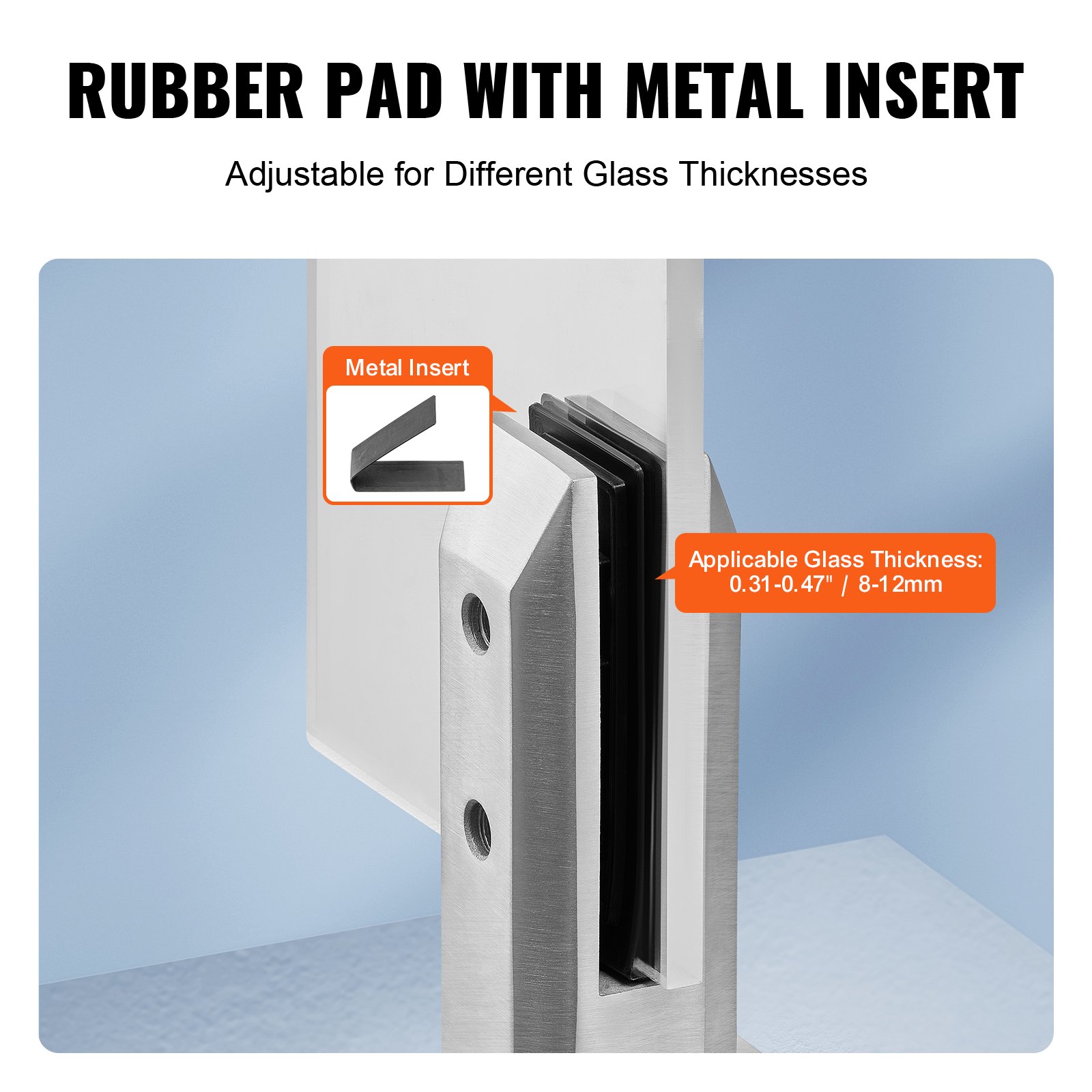 VEVOR Glass σφιγκτήρας 10 ΤΕΜ. Τετράγωνο στήριγμα κιγκλιδώματος για 0,31 "-0,47" γυαλί ασημί