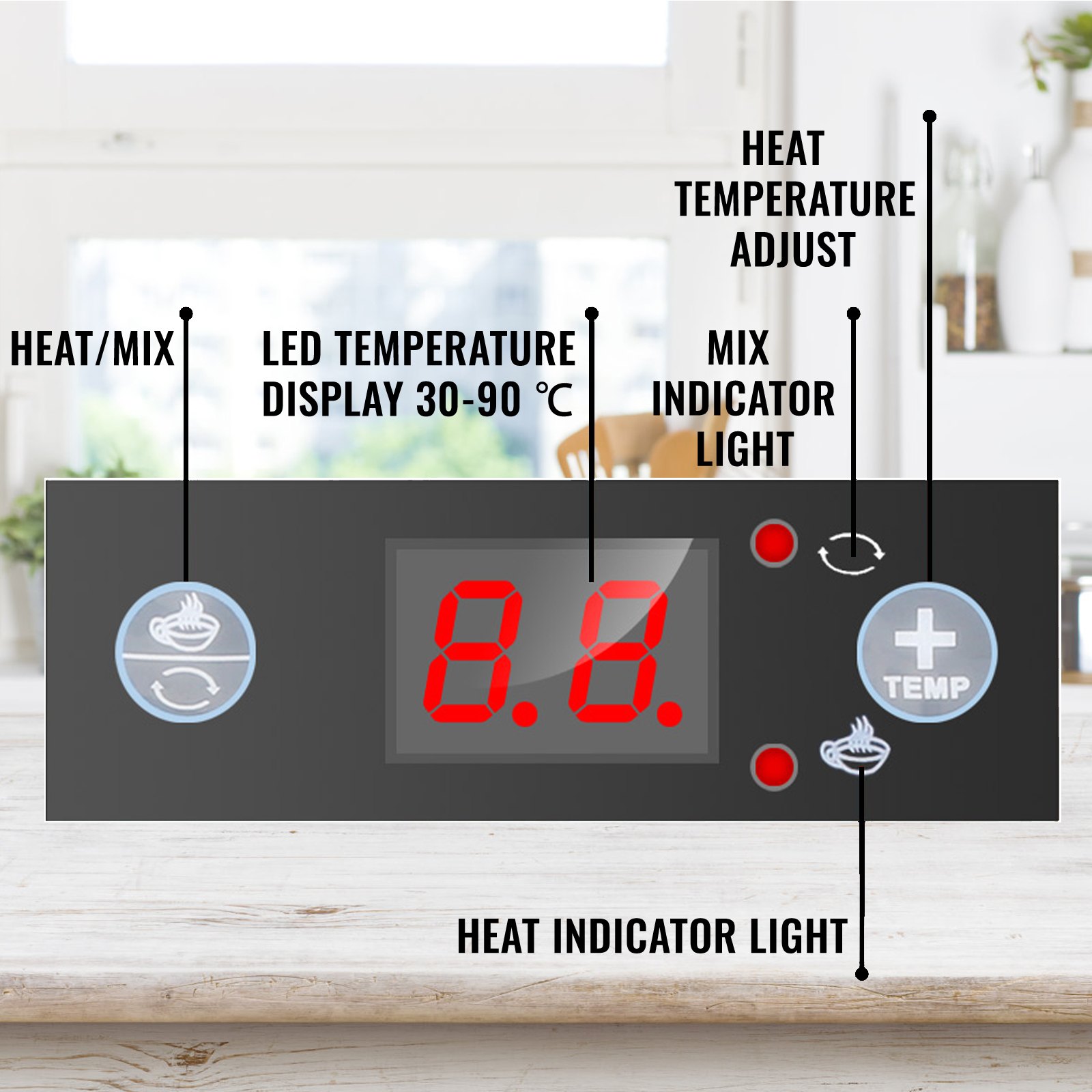 【ΕΥΚΟΛΟΣ ΣΤΗ ΧΡΗΣΗ】- Η θερμοκρασία που κυμαίνεται από 30 έως 90 ℃ που ελέγχεται από το σύστημα μακρο-υπολογιστή είναι πιο ακριβής και επιστημονική. Η λυχνία LED με το κουμπί αφής σάς επιτρέπει να ρυθμίσετε τις λειτουργίες θερμότητας/μίξης, να ρυθμίσετε τη θερμοκρασία με ευκολία. Στη συνέχεια, πιέστε τη λαβή για να απελευθερώσετε το ζεστό, πλούσιο, ανάμεικτο ρόφημα από τη βρύση που δεν στάζει και απολαύστε.