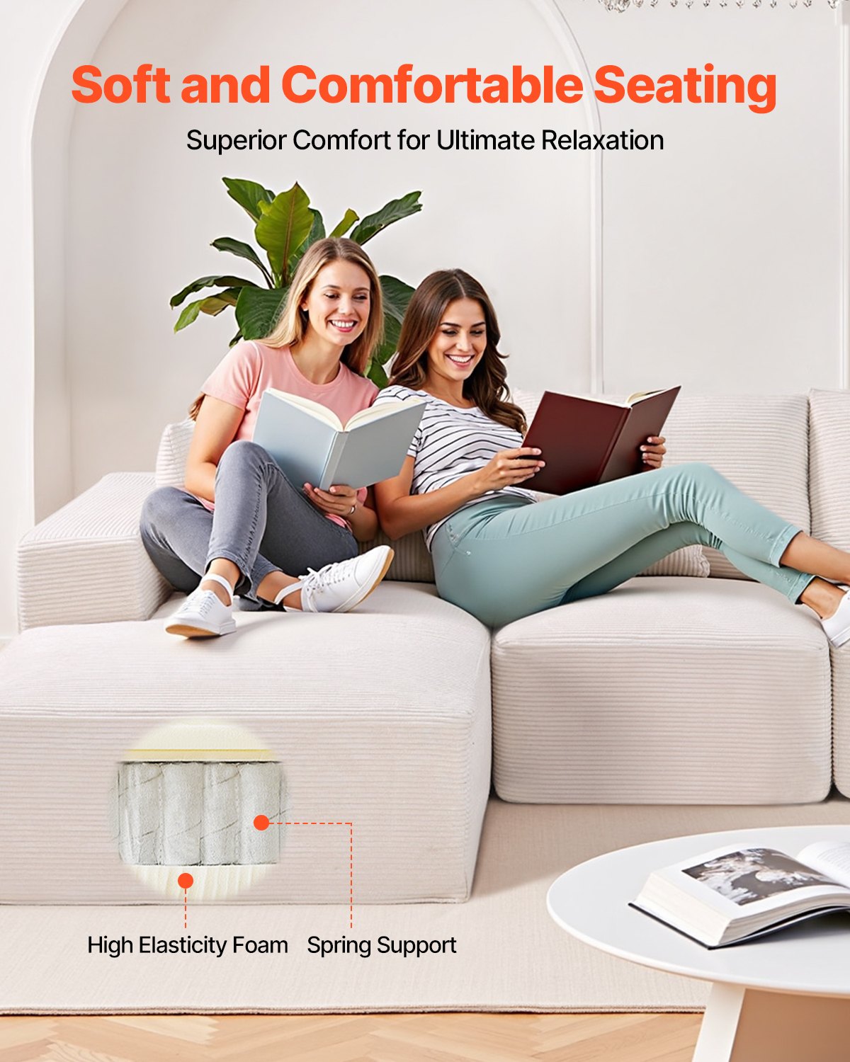 Μαλακά και άνετα καθίσματα: Αυτός ο αρθρωτός γωνιακός καναπές διαθέτει αφρό υψηλής ελαστικότητας και ελατηριωτή στήριξη, προσφέροντας απαλή, βελούδινη αίσθηση και μακροχρόνια ανθεκτικότητα.