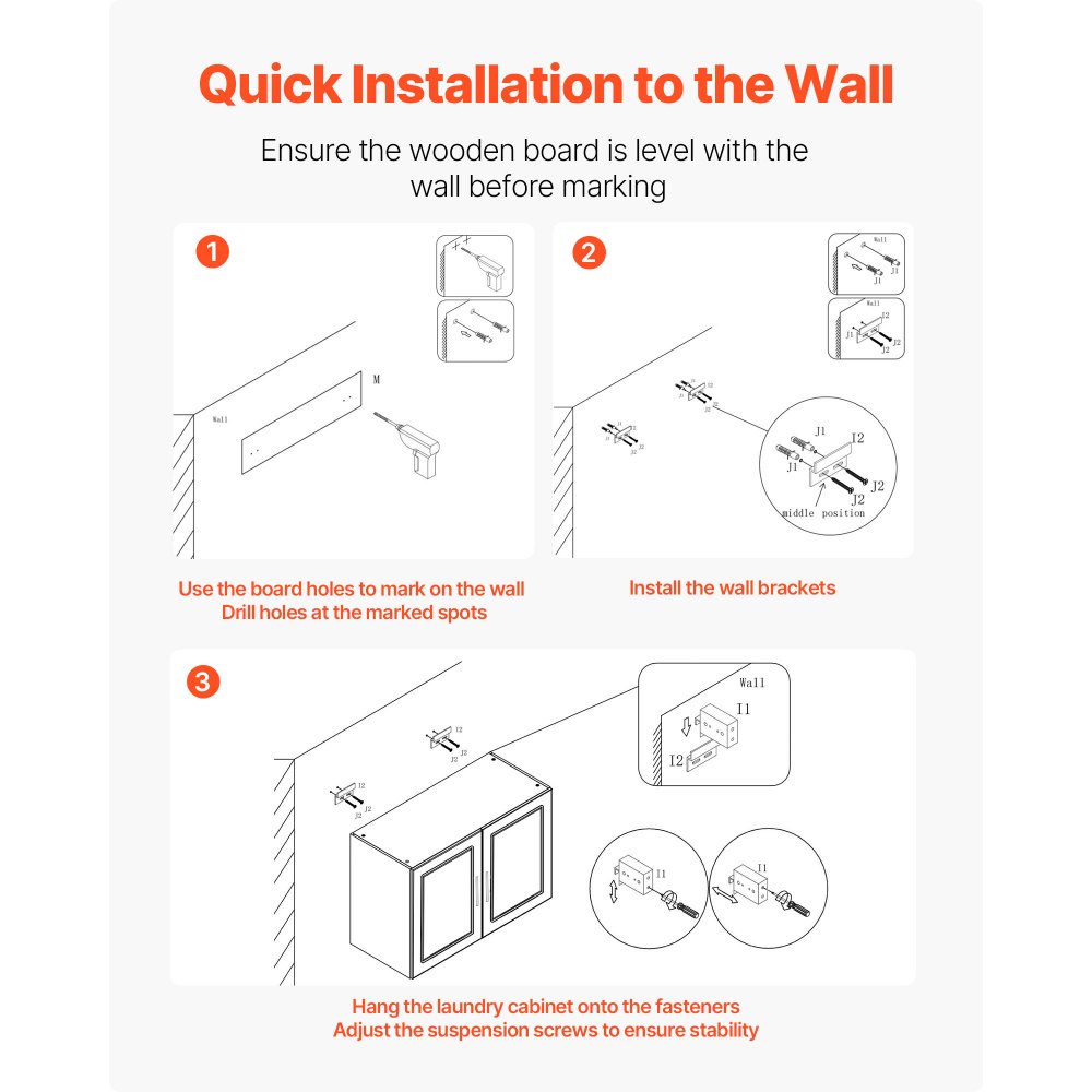 Αξιοποιήστε πλήρως τον χώρο στον τοίχο: Αυτό το ντουλάπι τοίχου για πλυσταριό χρησιμοποιεί εγκατάσταση τοίχου για μεγιστοποίηση του κατακόρυφου χώρου, εξοικονομώντας χώρο στο δάπεδο. Ακόμα και ένα μικρό πλυσταριό μπορεί να διαθέτει άφθονο αποθηκευτικό χώρο για τα απαραίτητα καθημερινά είδη πλυσίματος. Ευρύχωρος και ρυθμιζόμενος αποθηκευτικός χώρος: Με αρθρωτές πόρτες, αυτό το ντουλάπι ρούχων τοίχου παρέχει αποθήκευση ανθεκτική στη σκόνη. Τρία ρυθμιζόμενα ράφια σάς επιτρέπουν να οργανώνετε αντικείμενα όπως απορρυπαντικό και πετσέτες, μεγιστοποιώντας την χωρητικότητα αποθήκευσης του ντουλαπιού. Σταθερή Δομή: Κατασκευασμένο από μοριοσανίδα και MDF, αυτό το επιτοίχιο ντουλάπι πλυντηρίου αντέχει συνολικά έως και 27,2 κιλά. Τα στοιχεία στερέωσης στον τοίχο και οι διάτρητες σανίδες εξασφαλίζουν ασφαλή εγκατάσταση, διατηρώντας τη μακροπρόθεσμη σταθερότητά του χωρίς να γέρνει. Προσεγμένος σχεδιασμός λεπτομέρειας: Με κομψές μεταλλικές λαβές και μεντεσέδες με απαλό κλείσιμο, αυτό το ντουλάπι τοίχου προσφέρει ομαλή και αθόρυβη λειτουργία και αποτρέπει το τσίμπημα των δακτύλων. Η ενσωματωμένη οπή βίδας καλύπτει το μπλοκάρισμα της σκόνης, διατηρώντας το ντουλάπι σας καθαρό. Κατάλληλο για πολλαπλές σκηνές: Αυτό το ντουλάπι πλυντηρίου ταιριάζει σε μπάνια, κουζίνες, εργαστήρια ή γραφεία. Ο μοντέρνος, μινιμαλιστικός σχεδιασμός του το καθιστά ευέλικτο, λειτουργώντας τόσο ως αποθηκευτικό όσο και ως διακοσμητικό ντουλάπι.