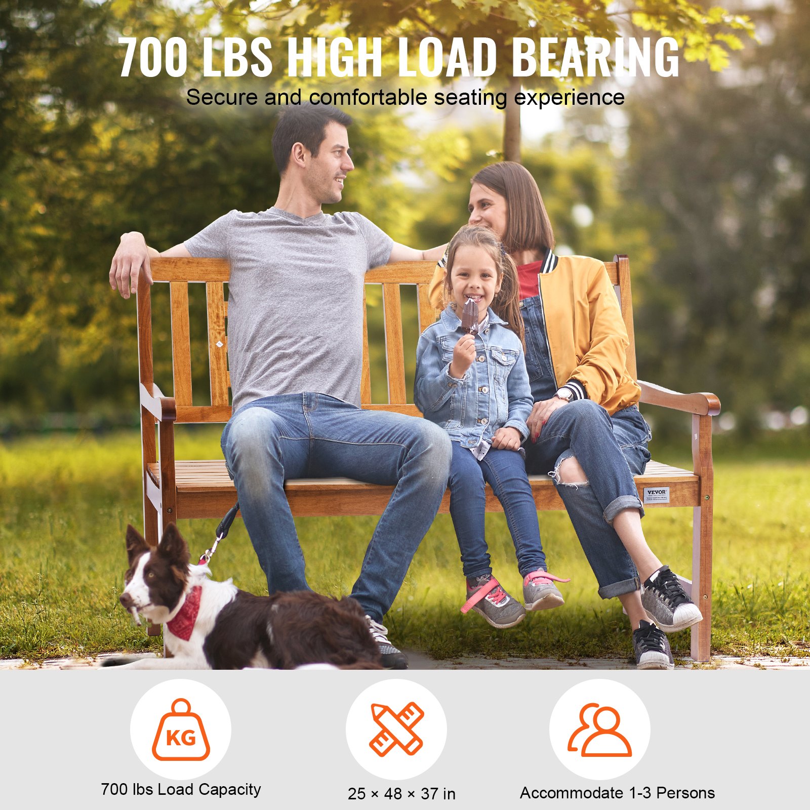 Κατασκευασμένος για εξωτερικούς χώρους: Κατασκευασμένος από υψηλής ποιότητας μασίφ ξύλο, αυτός ο υπαίθριος πάγκος πάρκου έχει σχεδιαστεί για να αντέχει τη μακροχρόνια χρήση σε εξωτερικούς χώρους και τις διάφορες καιρικές συνθήκες. Αντιστέκεται στη διάβρωση, την παραμόρφωση και τη ζημιά, υποστηρίζοντας έως και 700 λίβρες / 318 κιλά για να εξυπηρετεί χρήστες διαφορετικών μεγεθών.