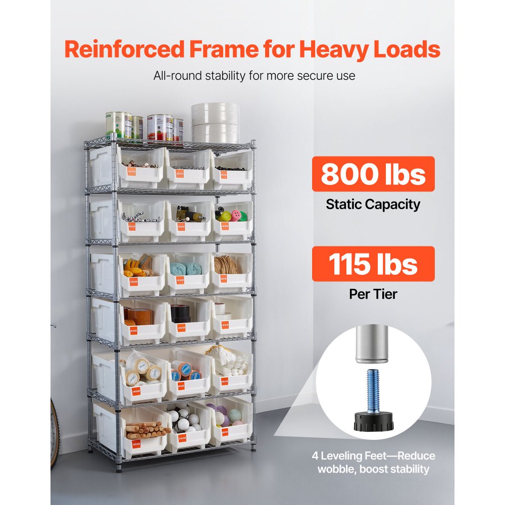 Αρθρωτή Αποθήκευση: Αυτή η 7-επίπεδη μονόπλευρη κυλιόμενη σχάρα κάδων περιλαμβάνει 18 μεσαίου μεγέθους κάδους από πολυπροπυλένιο. Κάθε κάδος διαθέτει υποδοχή ετικέτας, ώστε να μπορείτε να επισημαίνετε, να ταξινομείτε και να βρίσκετε γρήγορα τα εξαρτήματα για να διατηρείτε τον χώρο σας τακτοποιημένο. Ισχυρό φορτίο: Η σχάρα αποθήκευσης κάδων υποστηρίζει στατικό φορτίο έως και 800 λίβρες και 115 λίβρες ανά επίπεδο. Τέσσερα πόδια ισοπέδωσης μειώνουν την ταλάντωση και τη διατηρούν σταθερή σε ανώμαλα δάπεδα, έτσι ώστε η εγκατάστασή σας να παραμένει ασφαλής. Ρυθμιζόμενα ράφια: Οι γρήγορες βάσεις στήριξης της μονάδας αποθήκευσης κάδου γκαράζ σάς επιτρέπουν να αλλάζετε το ύψος του ραφιού σε δευτερόλεπτα για να ταιριάζει σε διαφορετικά μεγέθη κάδων. Μεγάλα εργαλεία και μικροσκοπικά εξαρτήματα έχουν την ιδανική θέση για πιο έξυπνη αποθήκευση. Εύκολη κινητικότητα: Τέσσερις ροδάκια 360° γλιστρούν ομαλά. Δύο κλειδώνουν για στάθμευση. Ωθήστε φορτίο έως και 100 κιλά. Οι ελαστικοί τροχοί του οργανωτή κάδου γκαράζ ασφαλίζουν τα δάπεδα, απορροφούν τους κραδασμούς και βοηθούν στην ησυχία κατά τη μετακίνησή σας. Ανθεκτική κατασκευή: Ο ανθεκτικός χάλυβας Q195 με φινίρισμα ηλεκτροστατικής βαφής είναι ανθεκτικός στη διάβρωση. Οι κάδοι από πολυπροπυλένιο πάχους 3 mm είναι ανθεκτικοί σε κρούσεις και χημικά για να διατηρούν τον εξοπλισμό σας προστατευμένο.