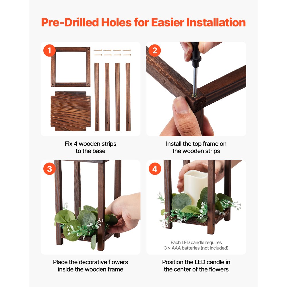 Αισθητικός Σχεδιασμός: Αυτό το ξύλινο φανάρι γάμου διαθέτει ένα τεχνητό στεφάνι ευκαλύπτου και κεριά LED για μια ζεστή, ρομαντική λάμψη. Κατασκευασμένο από ανθρακούχο φινίρισμα με φυσικό σκούρο καφέ ξύλο, είναι ιδανικό για γάμους, διαδρόμους και στρώσεις τραπεζιών. Ανθεκτικά Υλικά: Σε αντίθεση με τα εύθραυστα πλαστικά φανάρια, τα ξύλινα φανάρια μας υιοθετούν ένα πλαίσιο από ανθρακούχο κέδρο με φυσικά νερά και κυβική δομή με σταθερό σχήμα. Αντέχουν σε επαναλαμβανόμενες μετακινήσεις, τοποθετήσεις και μεταφορές για συχνές εκδηλώσεις ή εμπορική χρήση. Πλήρες σετ φαναριών: Το ξύλινο φανάρι διαθέτει 12 ξύλινα φανάρια (5,51 x 5,51 x 10,03 ίντσες), 12 κεριά LED (Ø2,95 x 4,45 ίντσες, απαιτούνται 3 μπαταρίες AAA—δεν περιλαμβάνονται) και 12 στεφάνια ευκαλύπτου (Ø9,84 ίντσες). Όλα σε ένα για γάμους, γιορτές ή διακόσμηση σπιτιού. Εύκολη και γρήγορη συναρμολόγηση: Αυτά τα ξύλινα φανάρια διαθέτουν αρκετές βίδες και ένα ειδικό κατσαβίδι. Με προ-τρυπημένες τρύπες και εικονογραφημένο εγχειρίδιο χρήσης, είναι εύκολα στην εγκατάσταση χωρίς να απαιτούνται επιπλέον εργαλεία, ακόμη και για αρχάριους. Εξοικονομήστε χρόνο στην προετοιμασία της διακόσμησης. Επαναχρησιμοποιήσιμο για πολλαπλά σενάρια: Το κεντρικό μας φανάρι είναι συμπαγές για τοποθέτηση σε τραπεζαρίες, γραφεία υποδοχής, βιβλιοθήκες, βάσεις τηλεόρασης και κομοδίνα. Ιδανικό για γάμους, οικογενειακά δείπνα ή φεστιβάλ όπως η Ημέρα του Αγίου Βαλεντίνου, τα Χριστούγεννα και η Ημέρα των Ευχαριστιών.
