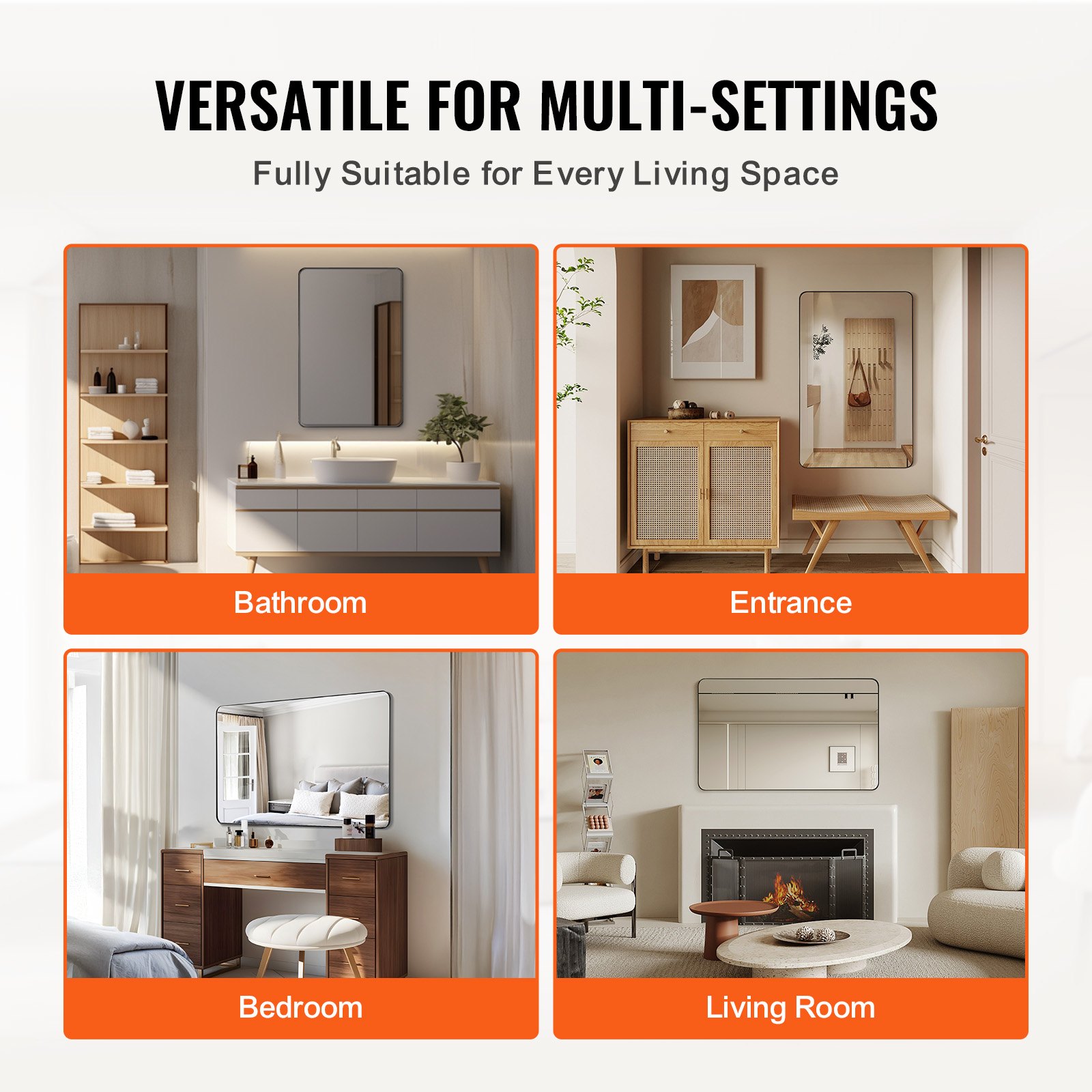 Ευέλικτη εγκατάσταση για οποιοδήποτε δωμάτιο: Αυτός ο καθρέφτης μπορεί να τοποθετηθεί εύκολα σε μπάνια, διαδρόμους, σαλόνια ή υπνοδωμάτια, συνδυάζοντας άψογα με διάφορα εσωτερικά στυλ. Ο προσαρμόσιμος σχεδιασμός του επιτρέπει να ταιριάζει άνετα σε διαφορετικές διατάξεις.
