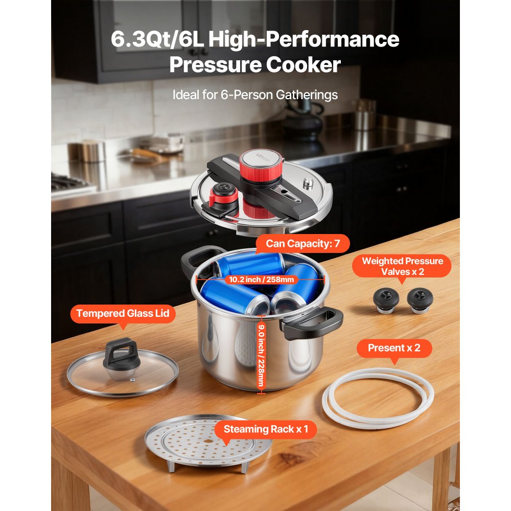 Σχεδιασμός Τρία σε Ένα: Με χωρητικότητα 6,3QT/6L, η χύτρα ταχύτητας εστίας συνδυάζει μια κατσαρόλα, μια σχάρα ατμού και μια λειτουργία πίεσης. Επιλέξτε χειροκίνητη απελευθέρωση, 60kPa ή 100kPa για να ταιριάζει με το πιάτο σας, επιτρέποντας γρήγορο και ομοιόμορφο μαγείρεμα που βοηθά στη διατήρηση της φυσικής γεύσης και των βασικών θρεπτικών συστατικών υπό υψηλή πίεση. Απόδοση υψηλής πίεσης: Στα 100kPa, η χύτρα ρυζιού υψηλής πίεσης είναι έως και 70% ταχύτερη από τα τυπικά μαγειρικά σκεύη, εξοικονομώντας σχεδόν μισή ώρα σε κάθε χρήση. Το αποτελεσματικό σύστημα εξάτμισης μειώνει την αναμονή, προσφέροντας στα νοικοκυριά έναν εύκολο τρόπο να απολαμβάνουν γρήγορη προετοιμασία και γευστικά γεύματα. Δομή Ομοιόμορφης Θέρμανσης: Ένας τριπλός πάτος επιτρέπει στην χύτρα ταχύτητας να θερμαίνεται γρήγορα και ομοιόμορφα σε επαγωγικές, κεραμικές, ηλεκτρικές ή εστίες αερίου. Ταιριάζει σε ποικίλες ρυθμίσεις μαγειρέματος χωρίς περιορισμό και υποστηρίζει εξοικονόμηση ενέργειας έως και 75%, διατηρώντας παράλληλα την ώρα του γεύματος ευέλικτη και αποτελεσματική. Ποιοτική κατασκευή από ανοξείδωτο ατσάλι: Κατασκευασμένη από ανοξείδωτο ατσάλι 304, η πολυκουζινάκι μας διατηρεί το σχήμα της υπό θερμότητα, περιορίζει τα σημάδια και επιβραδύνει τη σκουριά. Το γυαλισμένο εσωτερικό του, κατάλληλο για τρόφιμα, βοηθά στην ελαχιστοποίηση των κολλημάτων και καθαρίζεται γρήγορα, δίνοντας στην κατσαρόλα μια εμφάνιση που ταιριάζει σε μια μεγάλη γκάμα χώρων κουζίνας. Σχεδιασμός ομαλής ασφάλισης: Ο σχεδιασμός σταδιακού κλειδώματος με περιστρεφόμενο κουμπί επιτρέπει στην πολυχύτρα μας να ανοίγει και να κλείνει με απλό έλεγχο με το ένα χέρι. Η εργονομική απαλή λαβή και οι ανθεκτικές στη θερμότητα πλευρικές λαβές βοηθούν στη διατήρηση σταθερής και άνετης κάθε βήματος μαγειρέματος για καθημερινή χρήση.